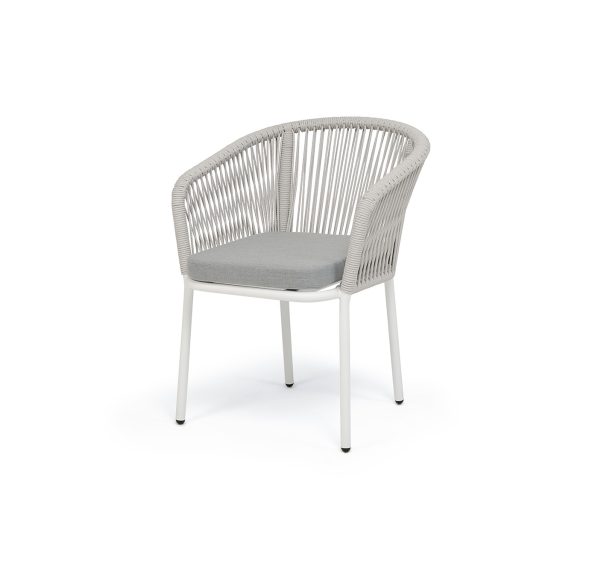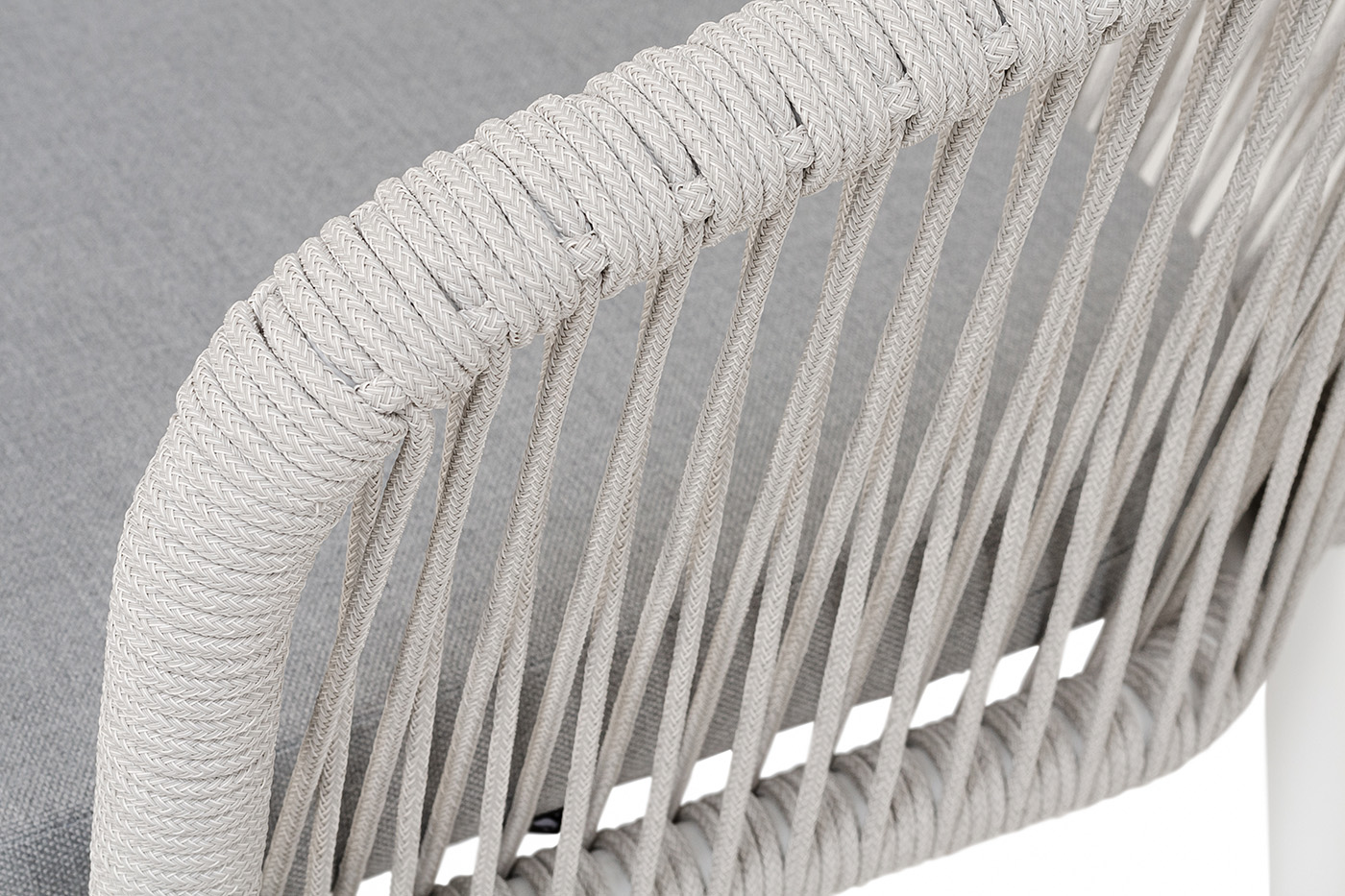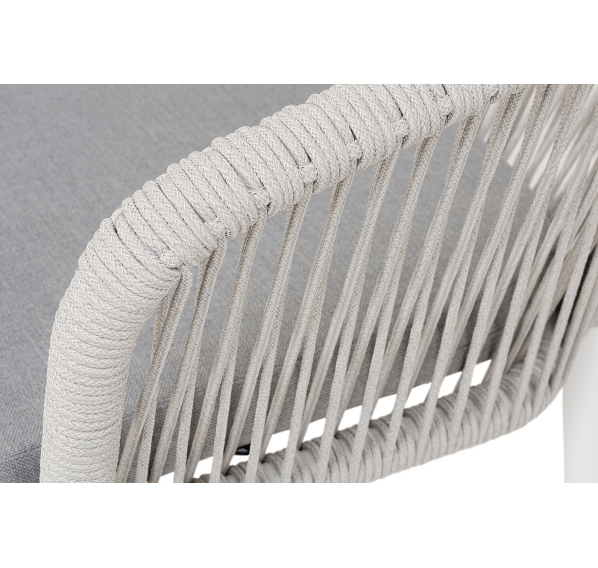 Выполнен из алюминиевого каркаса, окрашенного в белый цвет. Оплетка - современный материал «роуп», которым каркас оплетался вручную.