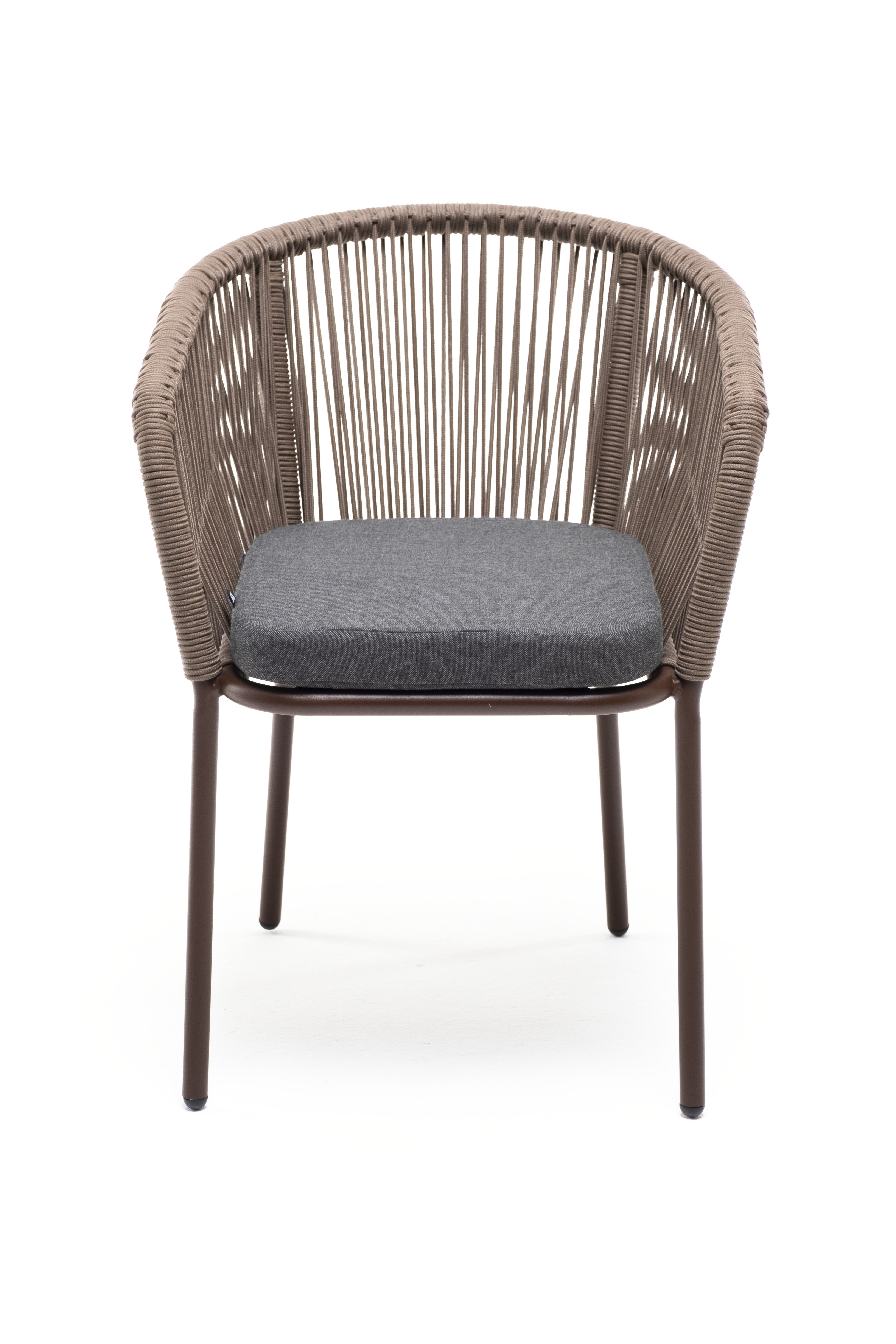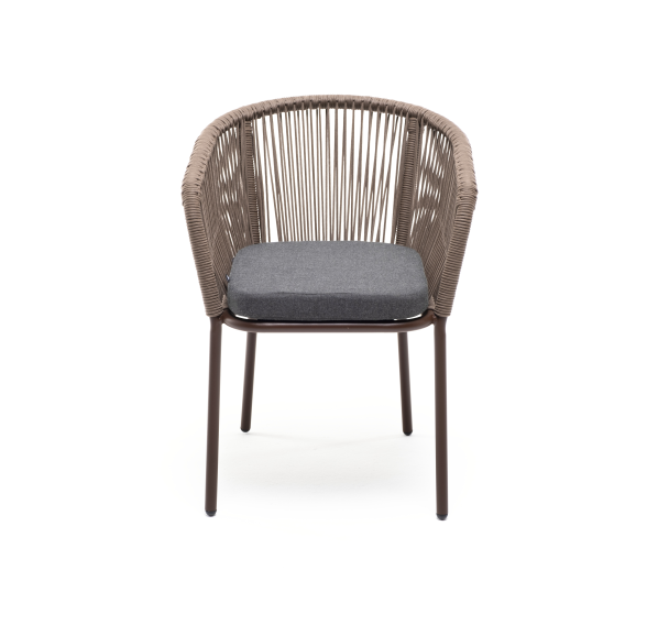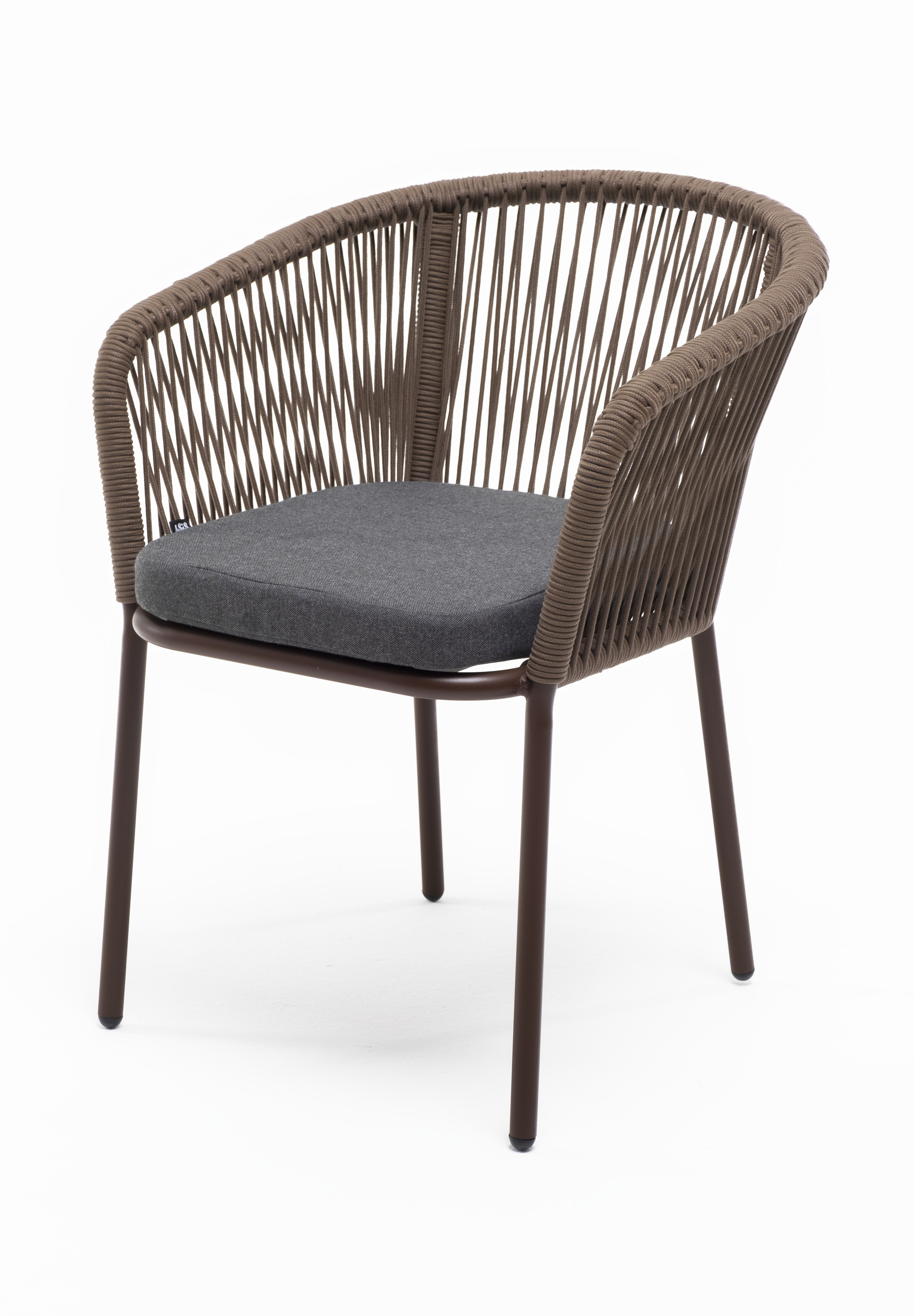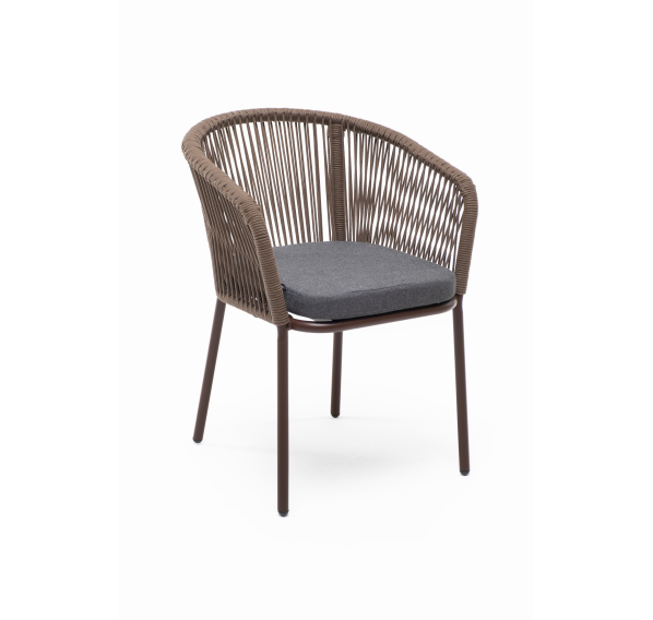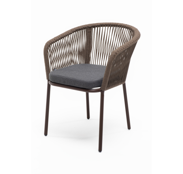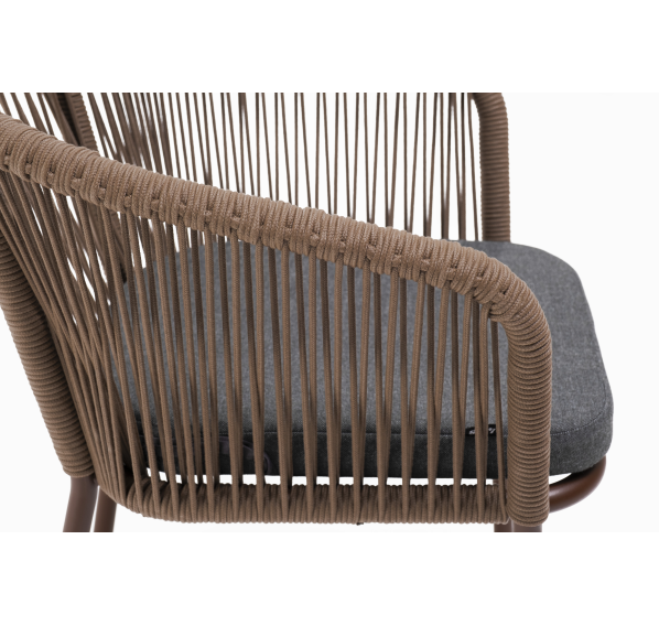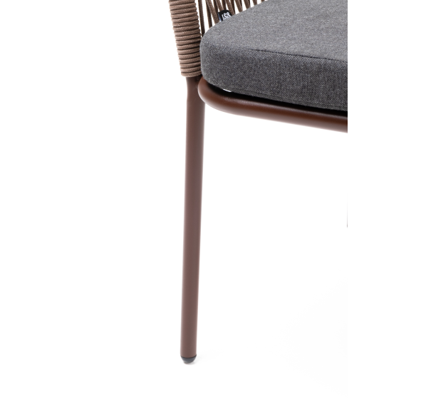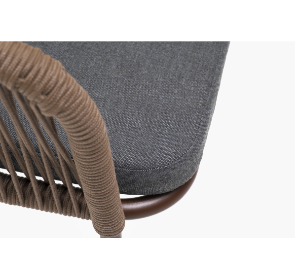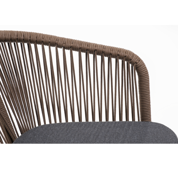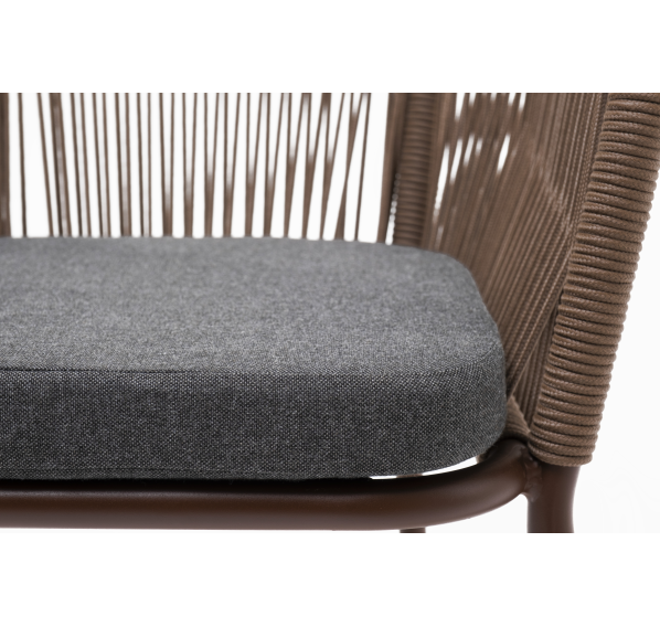 Выполнен из алюминиевого каркаса коричневого (RAL8016) цвета. Оплетка - современный материал «роуп», которым каркас оплетался вручную.