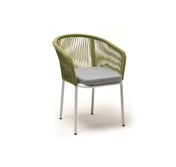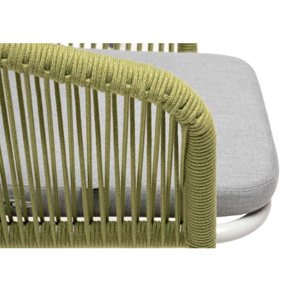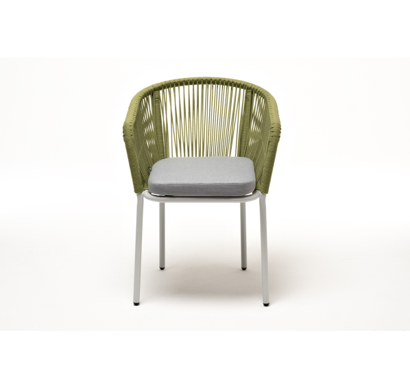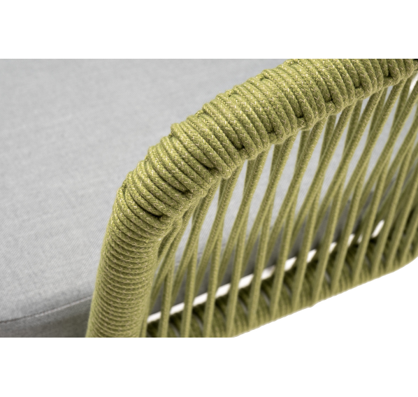 Выполнен из алюминиевого каркаса, окрашенного в светло-серый (RAL7035) цвет. Оплетка - современный материал «роуп», которым каркас оплетался вручную.