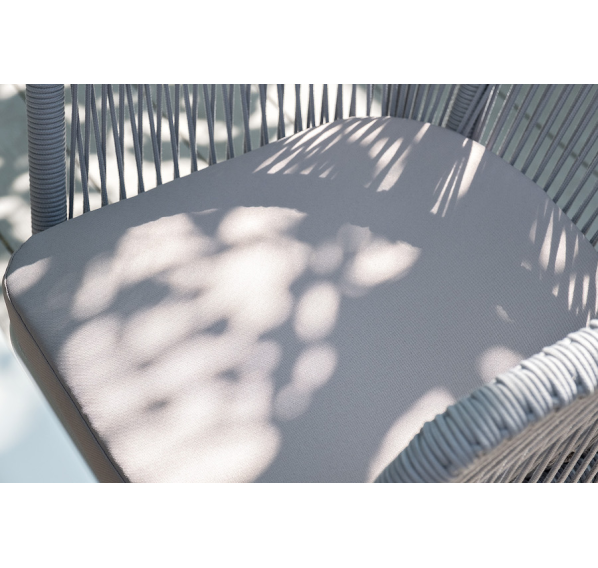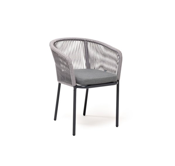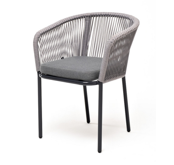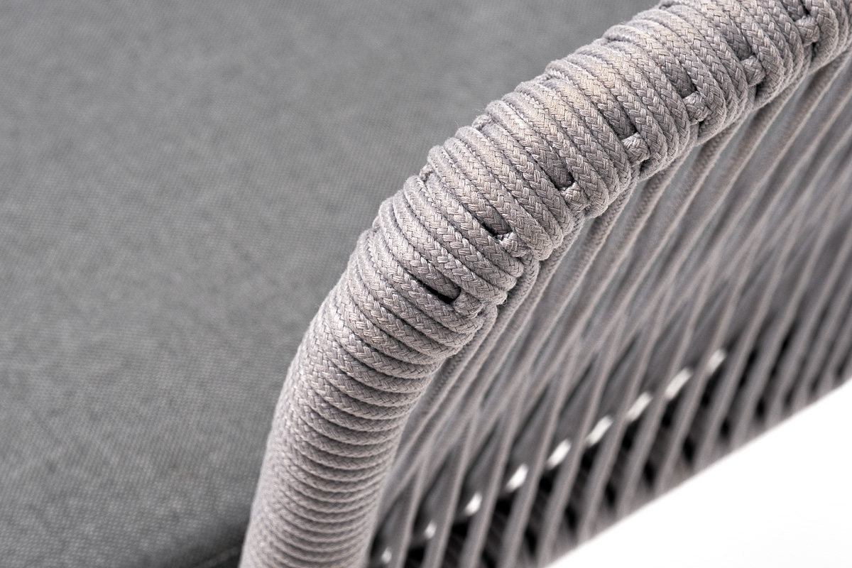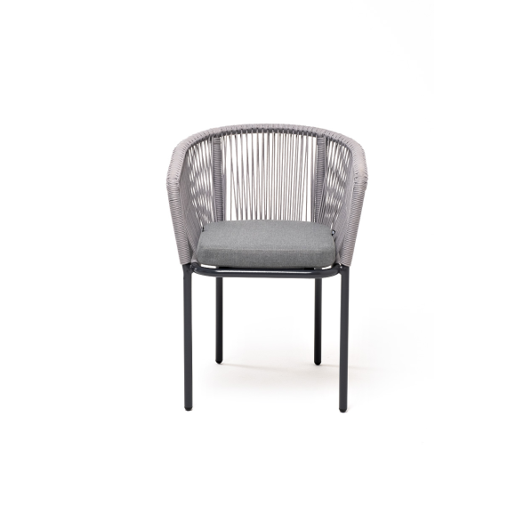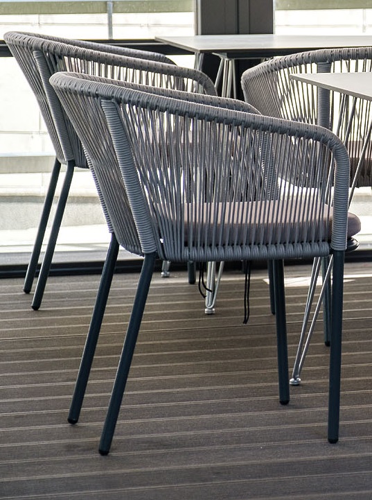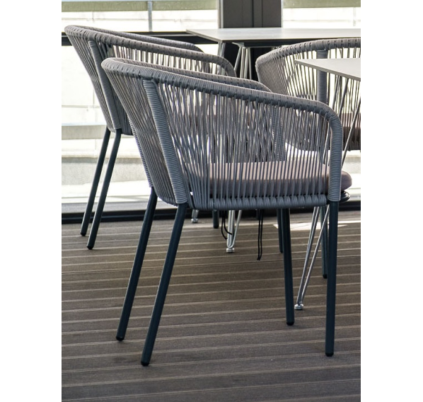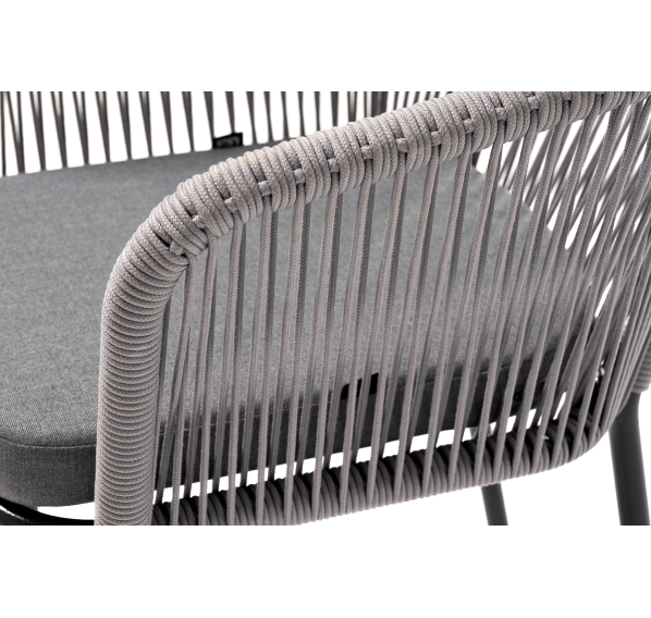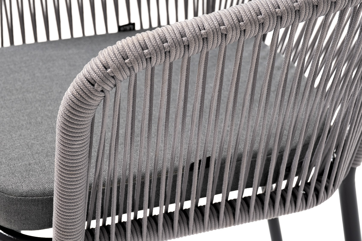 Выполнен из алюминиевого каркаса темно-серого (RAL7024) цвета. Оплетка - современный материал «роуп», которым каркас оплетался вручную.
