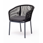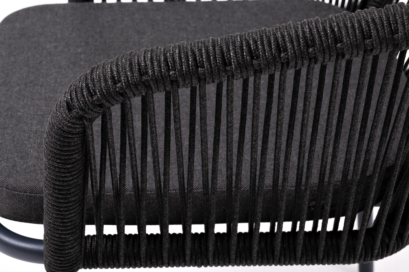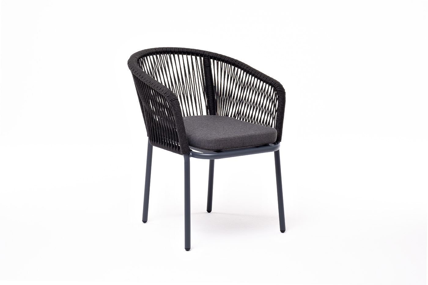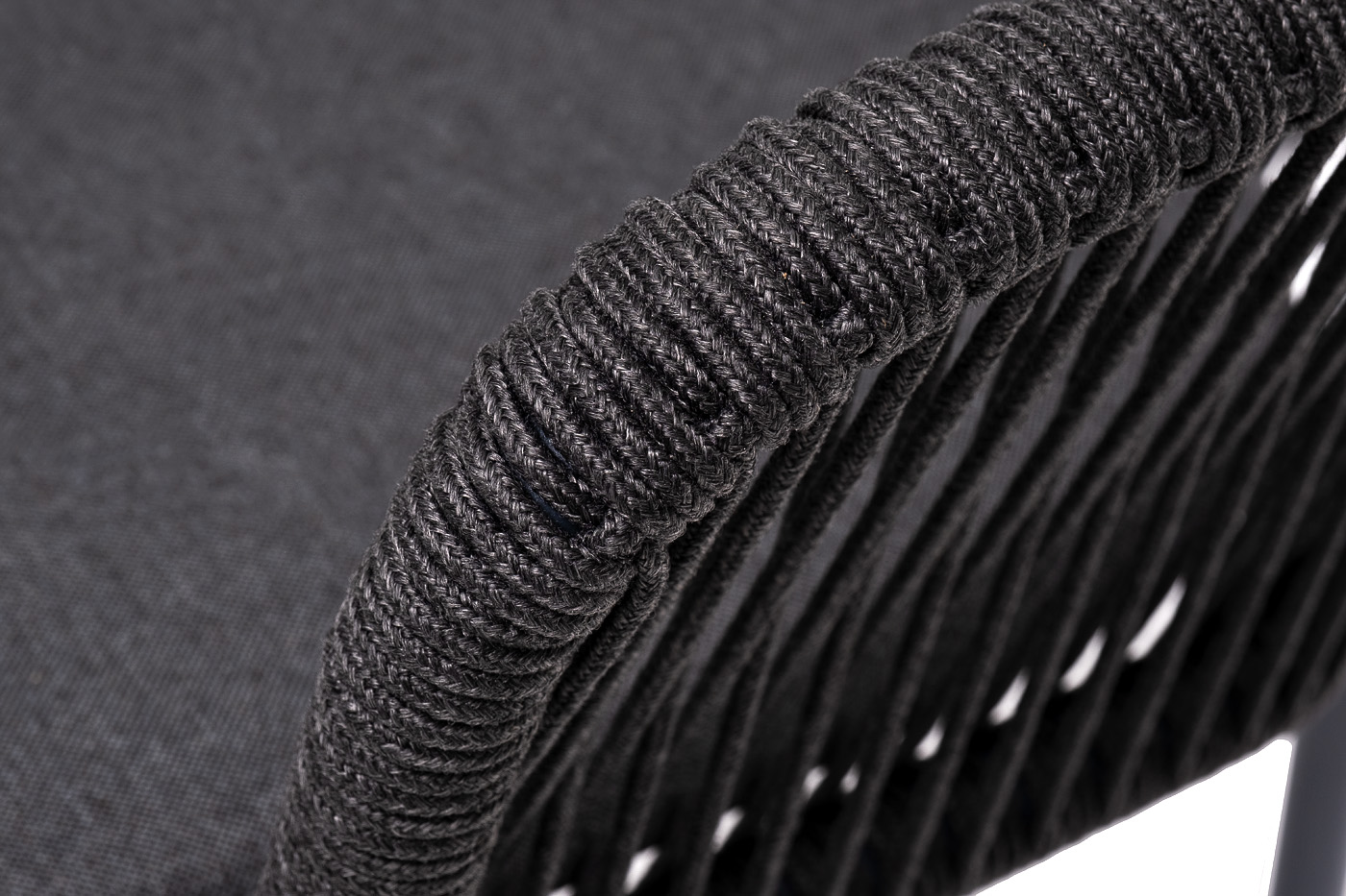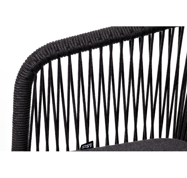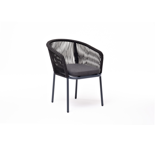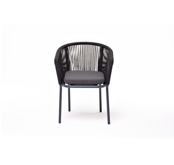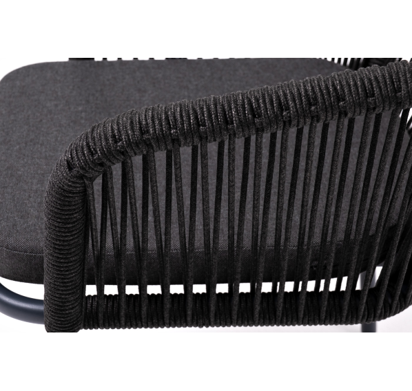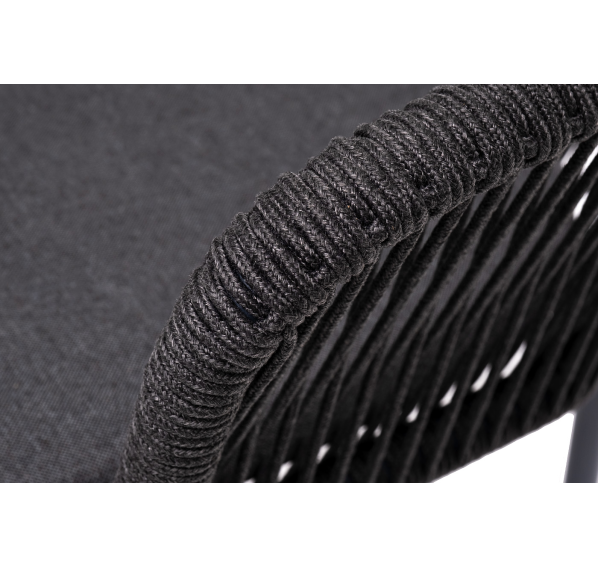 Выполнен из алюминиевого каркаса темно-серого (RAL7024) цвета. Оплетка - современный материал «роуп», которым каркас оплетался вручную.