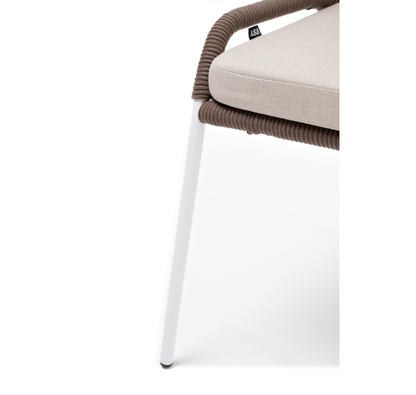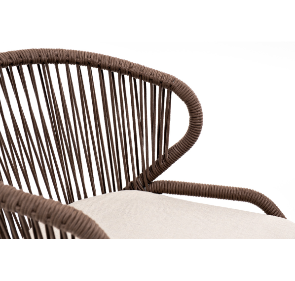 Изготовлен из алюминиевого каркаса белого цвета, оплетенного вручную эластичными синтетическими лентами из высокопрочных полиэфирных волокон (роуп круглый). Цвет оплетки - коричневый.