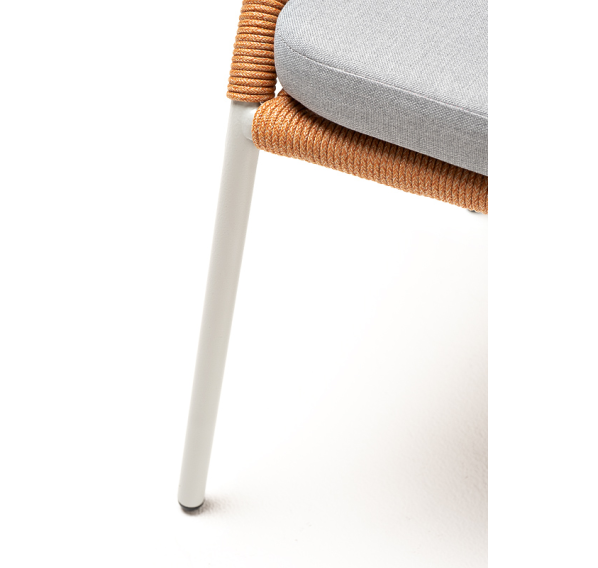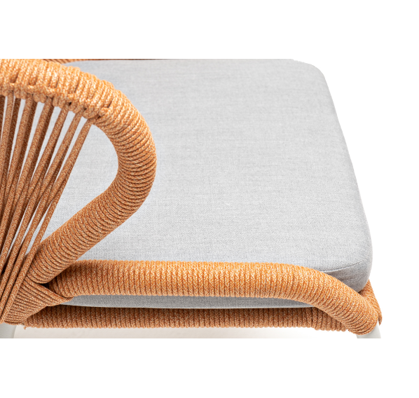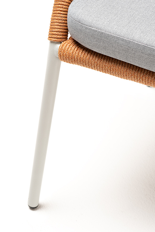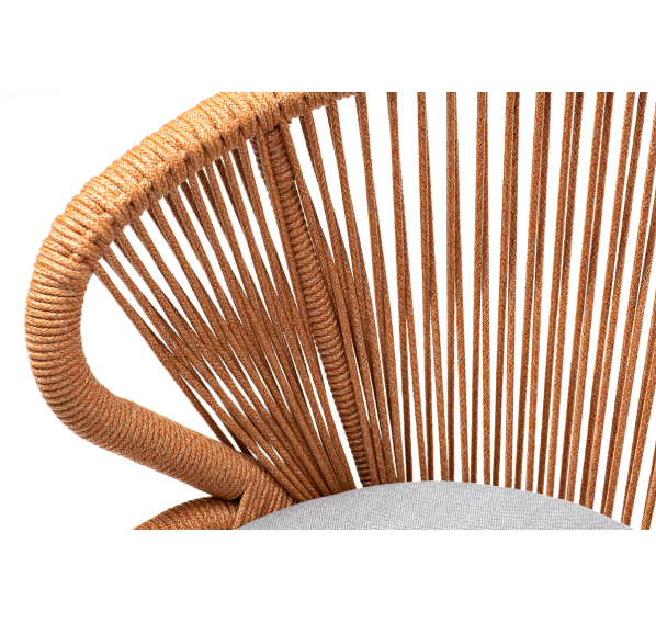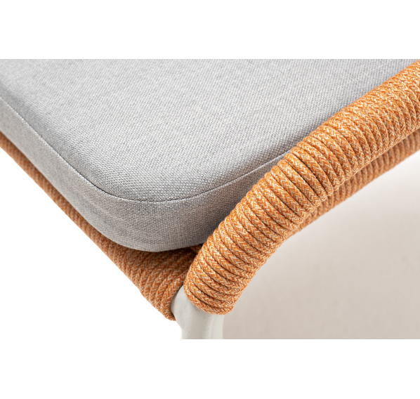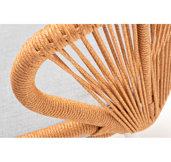 Изготовлен из алюминиевого каркаса, оплетенного вручную эластичными синтетическими лентами из высокопрочных полиэфирных волокон (роуп круглый). Цвет каркаса - светло-серый (RAL7035), оплетки - оранжевый меланж.