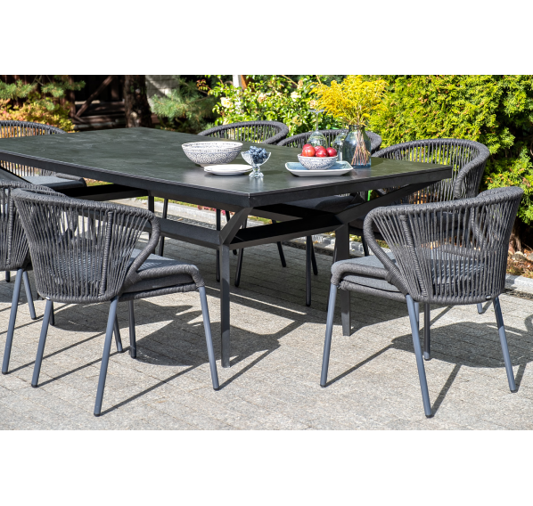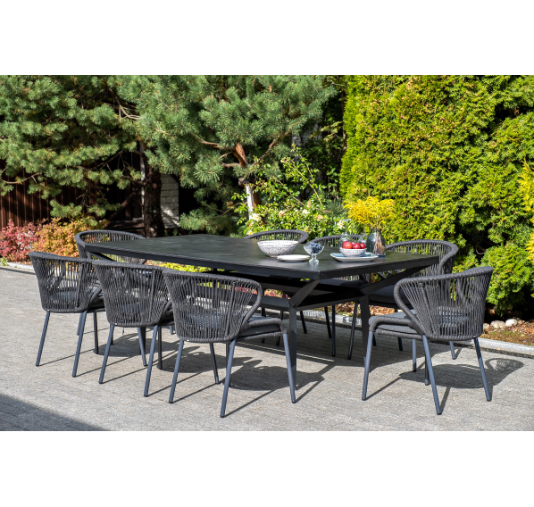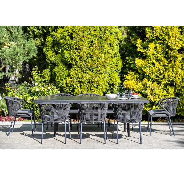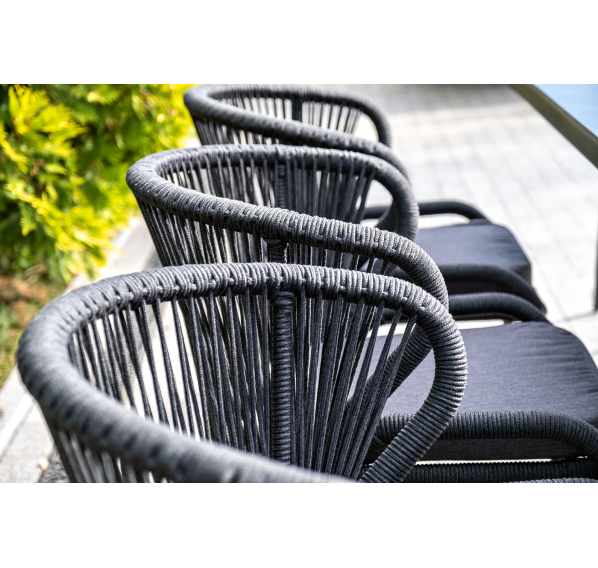 Изготовлен из алюминиевого каркаса, оплетенного вручную эластичными синтетическими лентами из высокопрочных полиэфирных волокон (роуп круглый). Цвет каркаса темно-серый (RAL7024), оплетки - темно-серый.