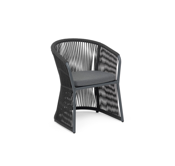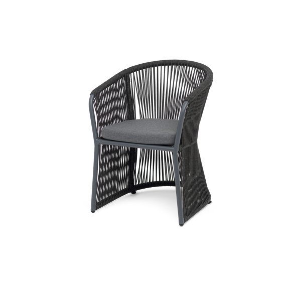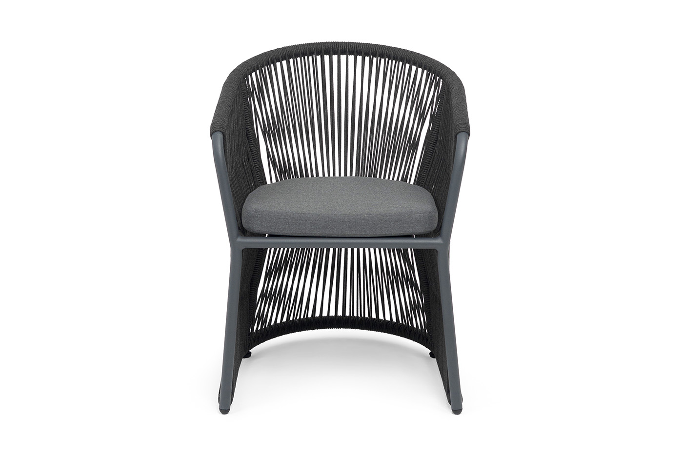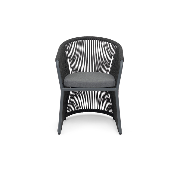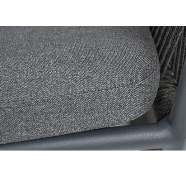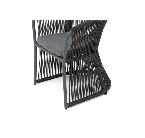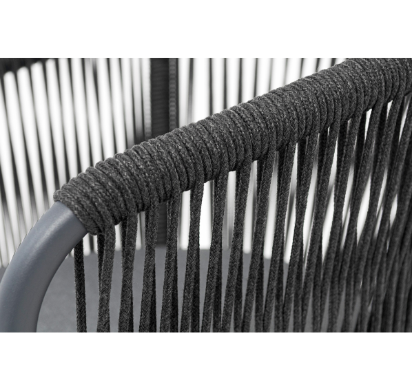 Выполнен из алюминиевого каркаса темно-серого (RAL7024) цвета. Оплетка - современный материал «роуп», которым каркас оплетался вручную.