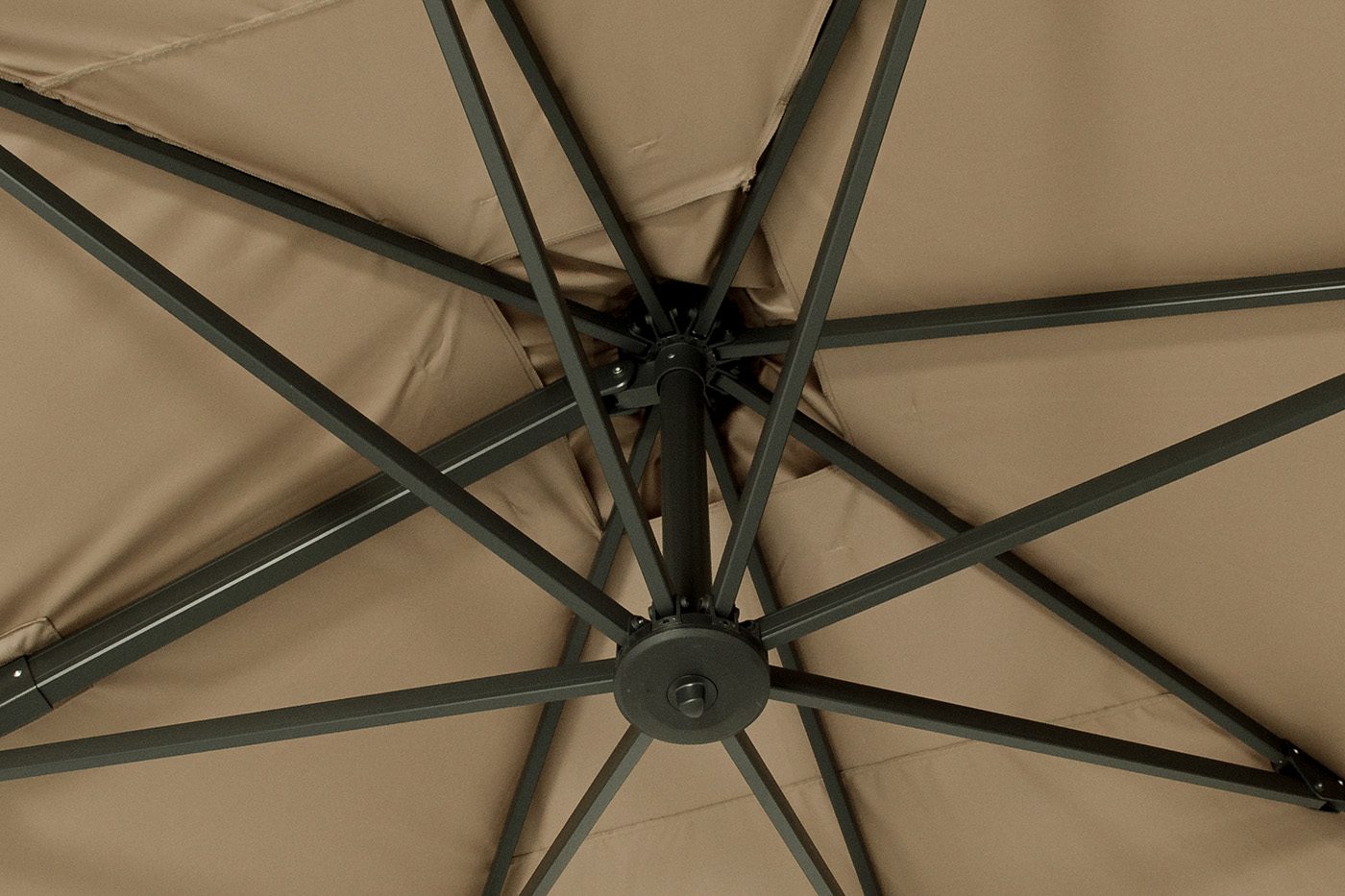 Уличный зонт «Римини» на боковой алюминиевой опоре с размером купола 3×3 м и общей высотой 259 см.