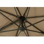 Опора зонта толщиной 105×65 мм состоит из двух частей: нижней и верхней. Конструкция купола состоит из 8 длинных спиц (207 см - 4 шт. и 70 см - 4 шт.). Высота от земли до нижнего края купола - 215 см.