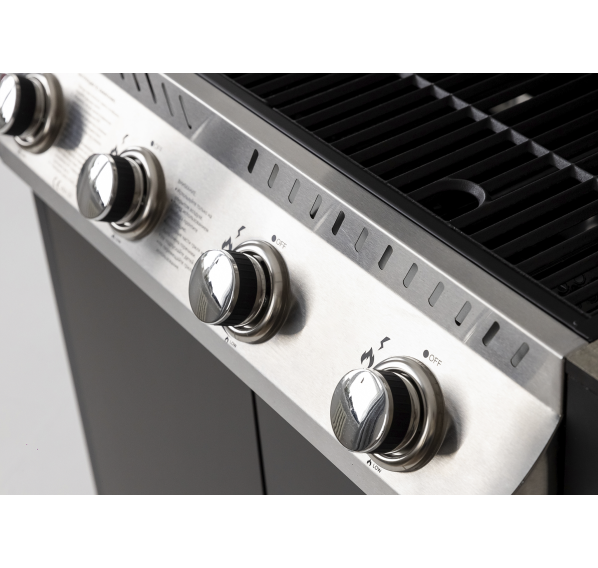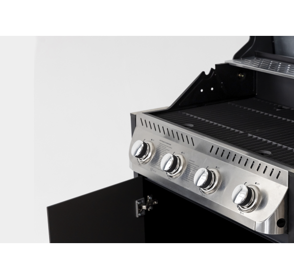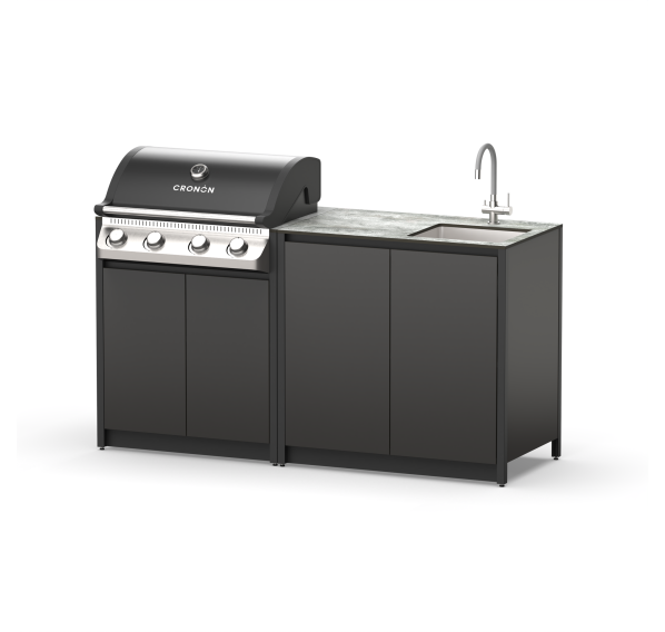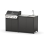 Уличный барбекю комплекс из двух модулей закрытого типа с газовым грилем, столешницей и мойкой.