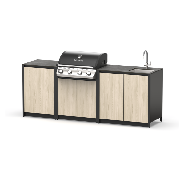 Мангальный комплекс из трех модулей закрытого типа со столешницей, мойкой, смесителем, и грилем