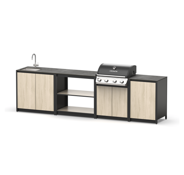 Мангальный комплекс из четырех модулей смешанного типа с мойкой, столешницей и газовым грилем