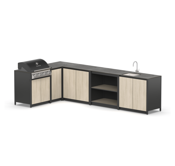 Угловой мангальный комплекс из шести модулей со столешницей, мойкой и газовым грилем