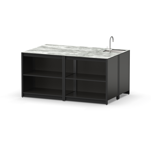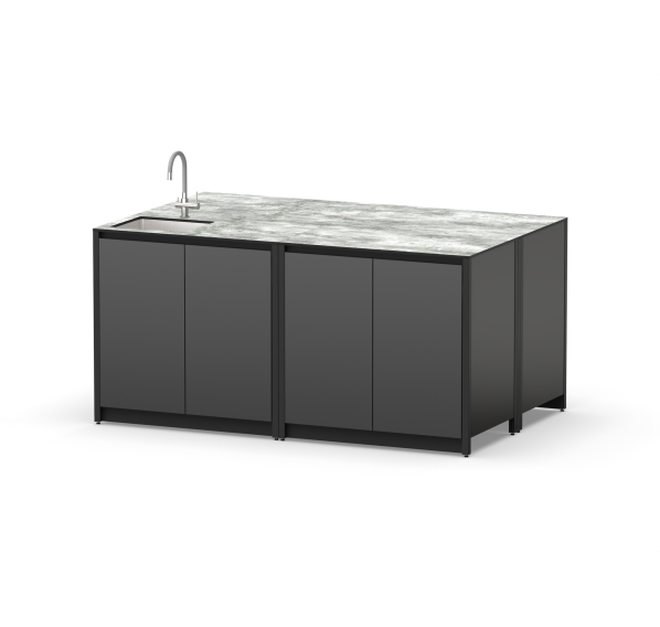 Остров из четырех модулей со столешницей, полками и мойкой для кухни на улице и в беседке