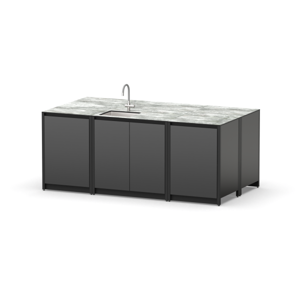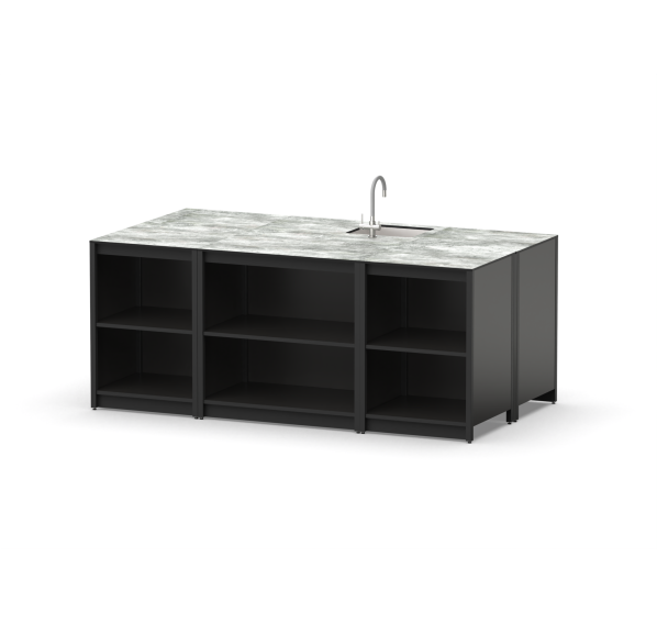 Сборный остров кухонный из шести модулей смешанного типа со столешницей и мойкой