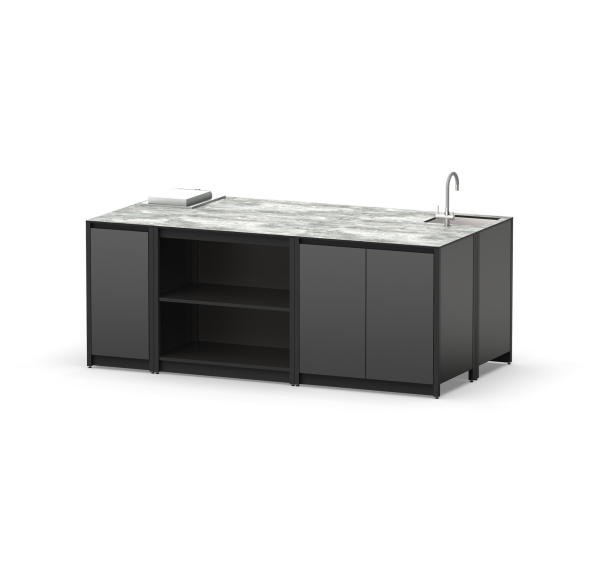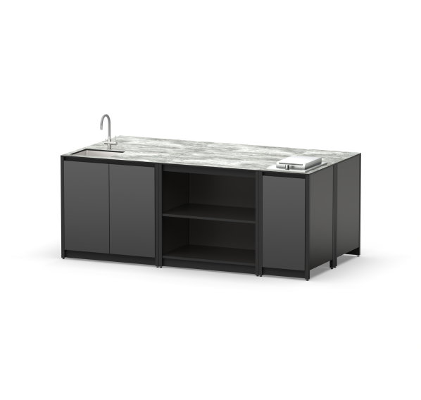 Островная зона из металла смешанного типа из шести модулей с мойкой и газовой плитой