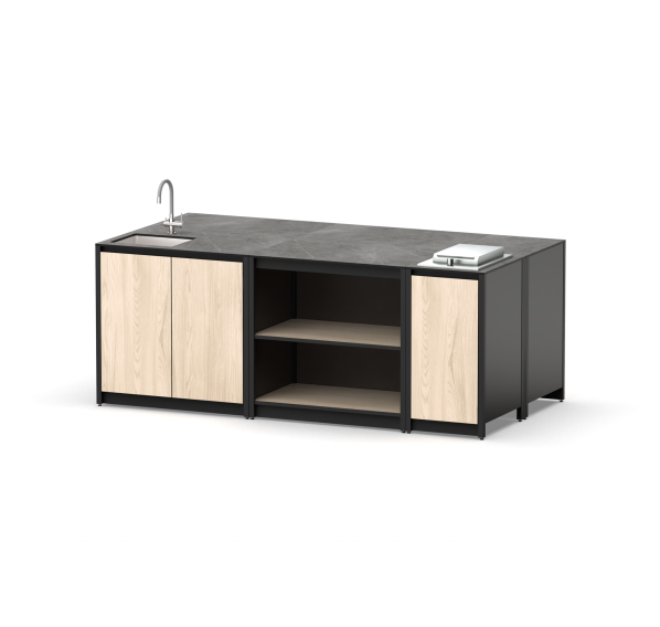 Островная зона из металла смешанного типа из шести модулей с мойкой и газовой плитой