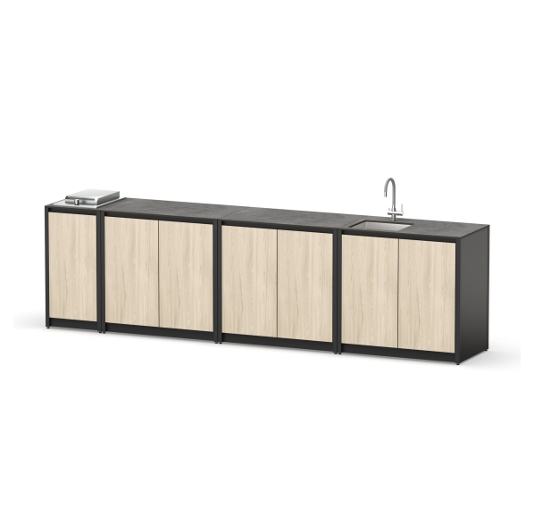 Уличная кухня из четырех модулей закрытого типа с мойкой, дверками и газовой плитой для дачи и улицы.