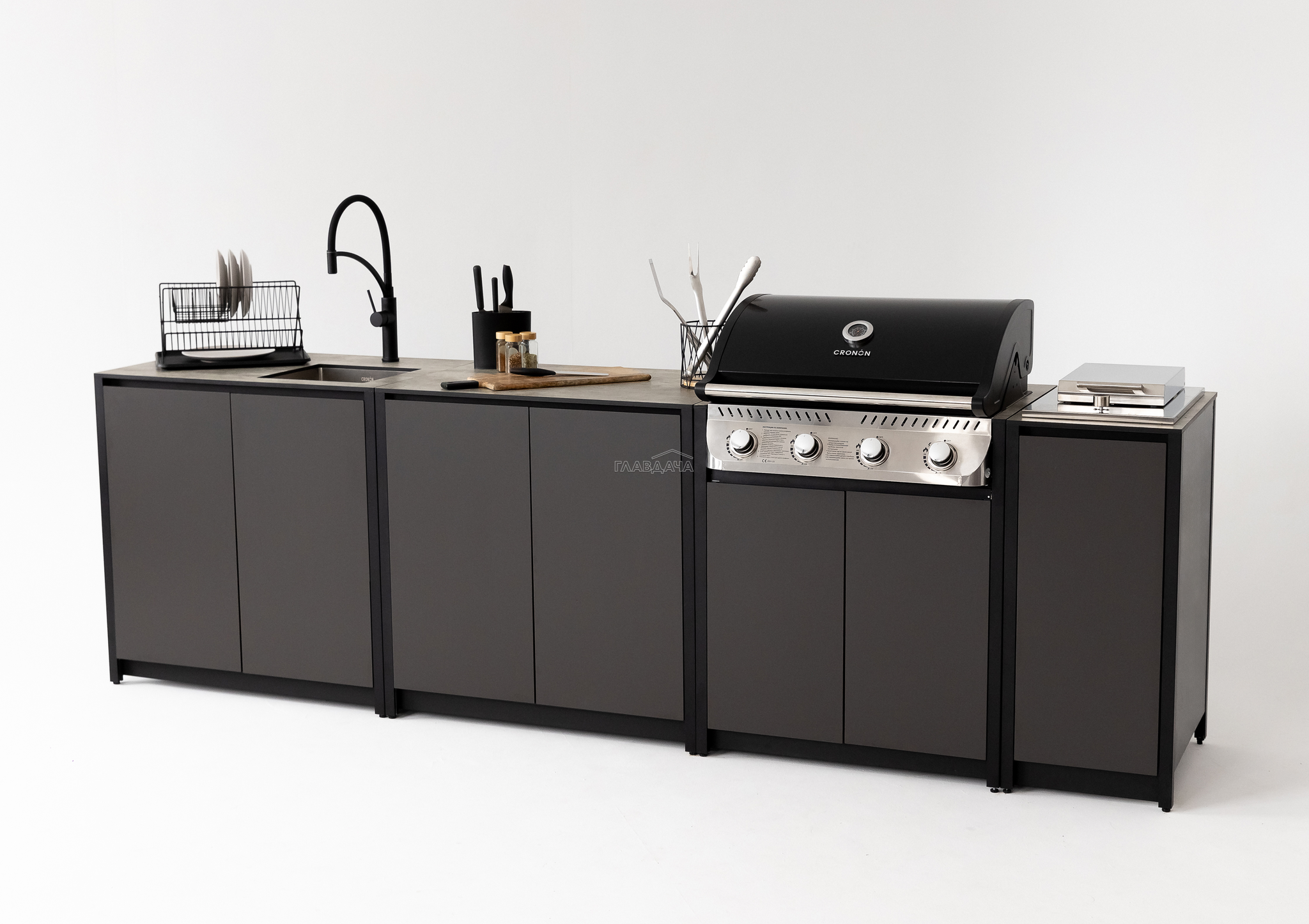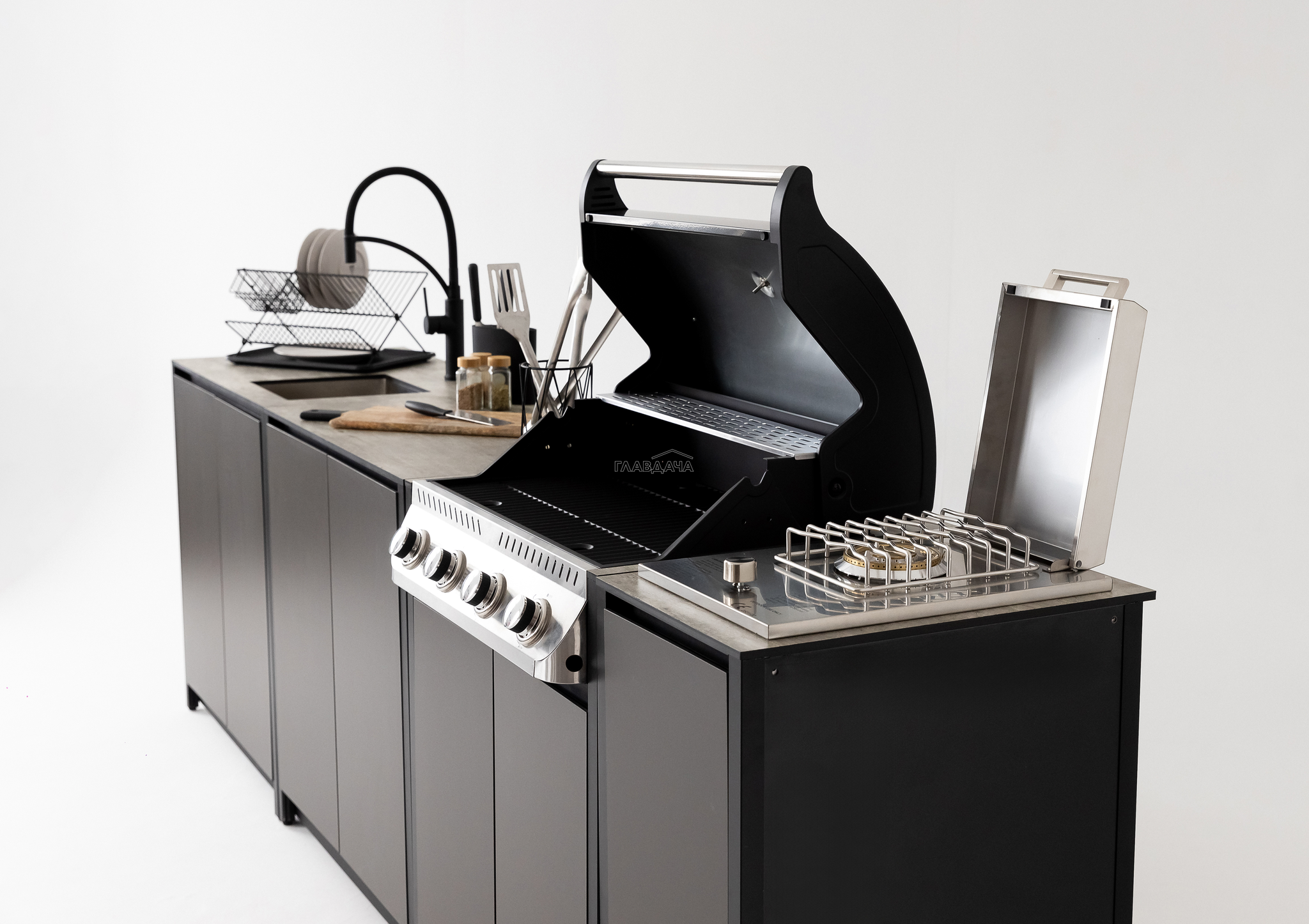Барбекю комплексы — это современные уличные конструкции, которые станут идеальным решением для приготовления разнообразных блюд и качественного отдыха на природе. На такой кухне сборного типа есть все самое необходимое. Ее комплектация зависит от предпочтений и требований хозяев. Модульные барбекю зоны могут быть оснащены газовым грилем, плитой, мойкой, рабочей поверхностью и вместительными ящиками для хранения. Этого арсенала вполне достаточно для того, чтобы готовить вкусные и сочные шедевры кулинарии. Сборные барбекю комплексы изготовлены из прочных и долговечных материалов, которые позволяют готовой конструкции оставаться устойчивой к разного рода воздействиям в любое время года. Она не боится влаги, солнечных лучей и механического воздействия. Благодаря этому, можно использовать барбекю комплексы от производителя круглогодично, не переживая эксплуатационные свойства и внешний вид изделия. Барбекю зоны выполнены в стиле лофт, что отвечает всем актуальным тенденциям ландшафтного дизайна. Такие современные конструкции выглядят стильно, лаконично и станут настоящим украшением для дачи, беседки, террасы, загородного дома.За счет того, что конструкция сборная, она может быть абсолютно индивидуальной. Каждый хозяин сможет выбрать необходимую комплектацию, которая позволит наслаждаться пространством в полной мере. Больше не нужно бегать в дом за всем необходимым, потому что все самое важное находится по рукой.