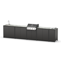 Мангальный комплекс из трех модулей закрытого типа со столешницей, мойкой, смесителем, и грилем