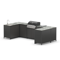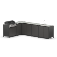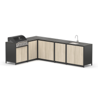 Угловая кухня в стиле лофт закрытого типа из пяти модулей с газовым грилем, плитой, мойкой и столешницей для дома и дачи.