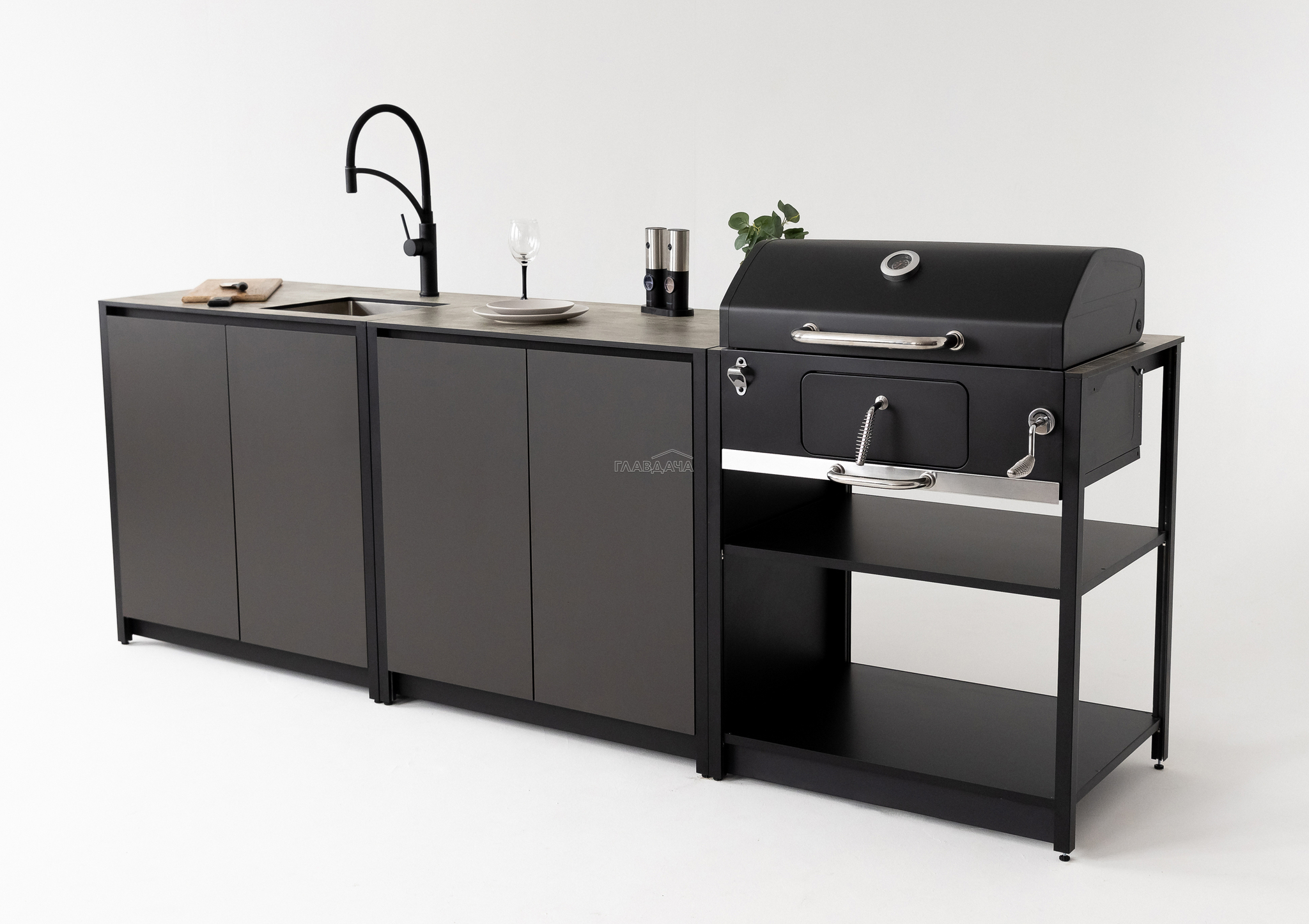 Барбекю комплексы — это современные уличные конструкции, которые станут идеальным решением для приготовления разнообразных блюд и качественного отдыха на природе. На такой кухне сборного типа есть все самое необходимое. Ее комплектация зависит от предпочтений и требований хозяев. Модульные барбекю зоны могут быть оснащены газовым грилем, плитой, мойкой, рабочей поверхностью и вместительными ящиками для хранения. Этого арсенала вполне достаточно для того, чтобы готовить вкусные и сочные шедевры кулинарии. Сборные барбекю комплексы изготовлены из прочных и долговечных материалов, которые позволяют готовой конструкции оставаться устойчивой к разного рода воздействиям в любое время года. Она не боится влаги, солнечных лучей и механического воздействия. Благодаря этому, можно использовать барбекю комплексы от производителя круглогодично, не переживая эксплуатационные свойства и внешний вид изделия. Барбекю зоны выполнены в стиле лофт, что отвечает всем актуальным тенденциям ландшафтного дизайна. Такие современные конструкции выглядят стильно, лаконично и станут настоящим украшением для дачи, беседки, террасы, загородного дома.За счет того, что конструкция сборная, она может быть абсолютно индивидуальной. Каждый хозяин сможет выбрать необходимую комплектацию, которая позволит наслаждаться пространством в полной мере. Больше не нужно бегать в дом за всем необходимым, потому что все самое важное находится по рукой.