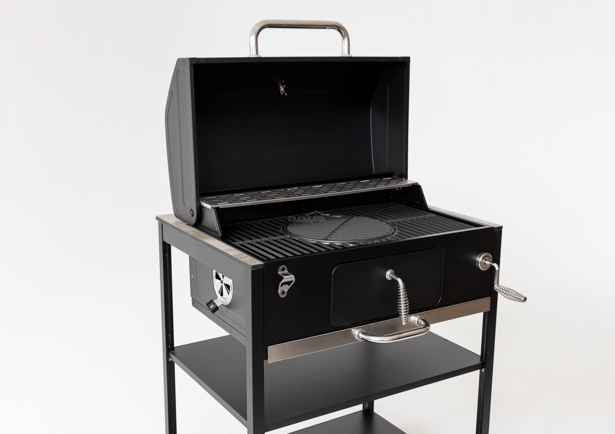 Этот угольный гриль не только идеально приготовит любимые блюда, но и станет прекрасным украшением Вашего двора. Регулируемые ножки обеспечат комфортное использование на любой поверхности. Насладитесь тёплой атмосферой с этим превосходным грилем на углях – отличным выбором для ценителей качественной еды!