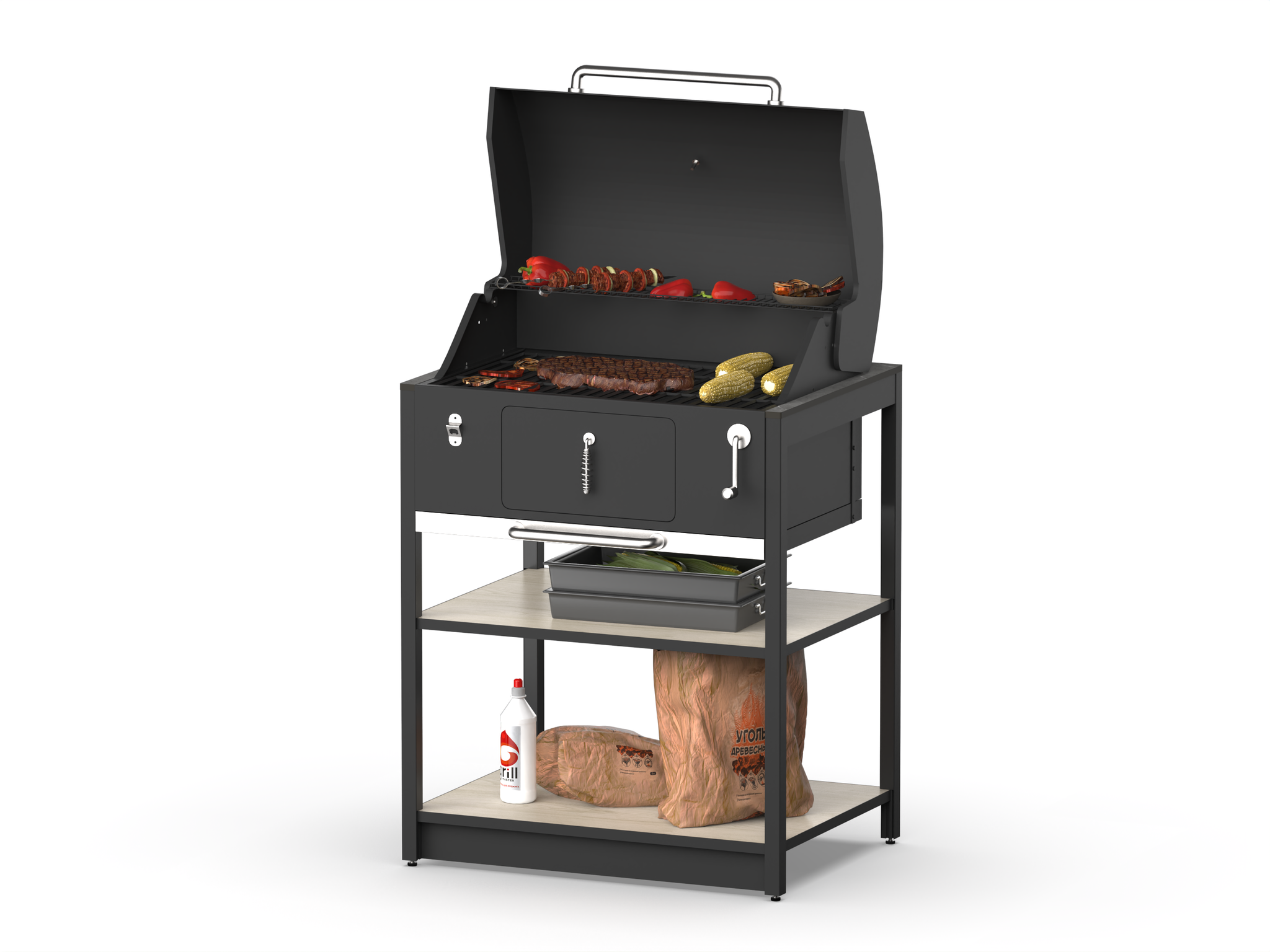 Этот угольный гриль не только идеально приготовит любимые блюда, но и станет прекрасным украшением вашего двора. Регулируемые ножки обеспечат комфортное использование на любой поверхности.