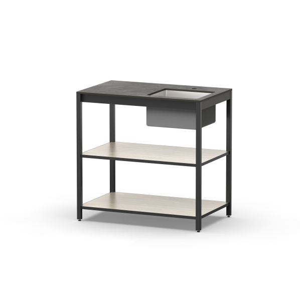 Алюминиевый профиль, влагостойкая столешница и полки из HPL гарантируют долгий срок службы. Регулируемые ножки позволяют настроить высоту по своему удобству. Дизайн коллекции Lounge добавит элегантности вашему интерьеру!