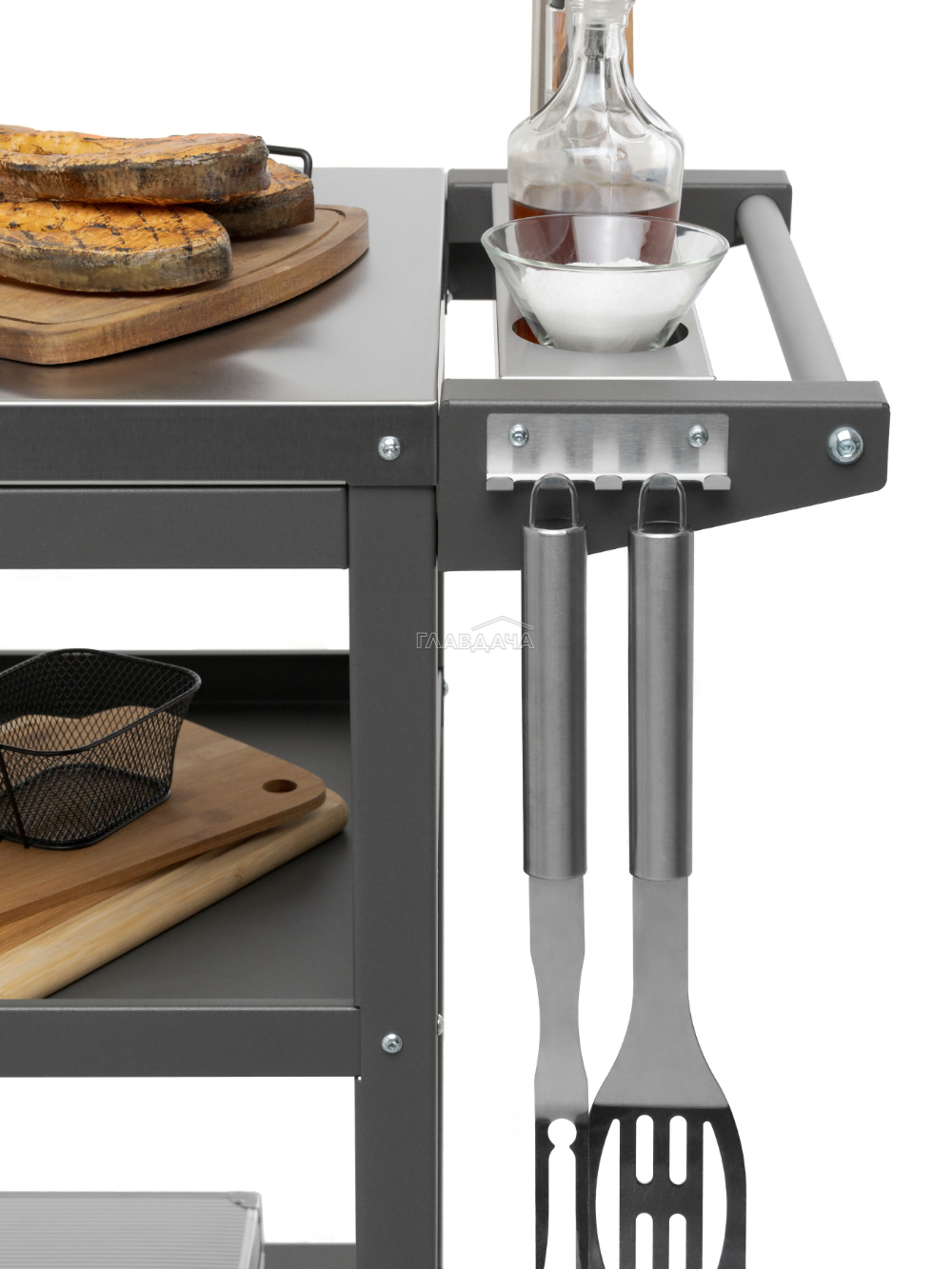 Передвижной стол Gratar Patio — это практичное передвижное устройство, предназначенное специально для удобства готовки на улице, будь то праздник, отдых на природе или семейная встреча. Компактный и функциональный, он облегчает процесс приготовления и сервировки пищи, превращаясь в незаменимого помощника на любых мероприятиях вне дома.