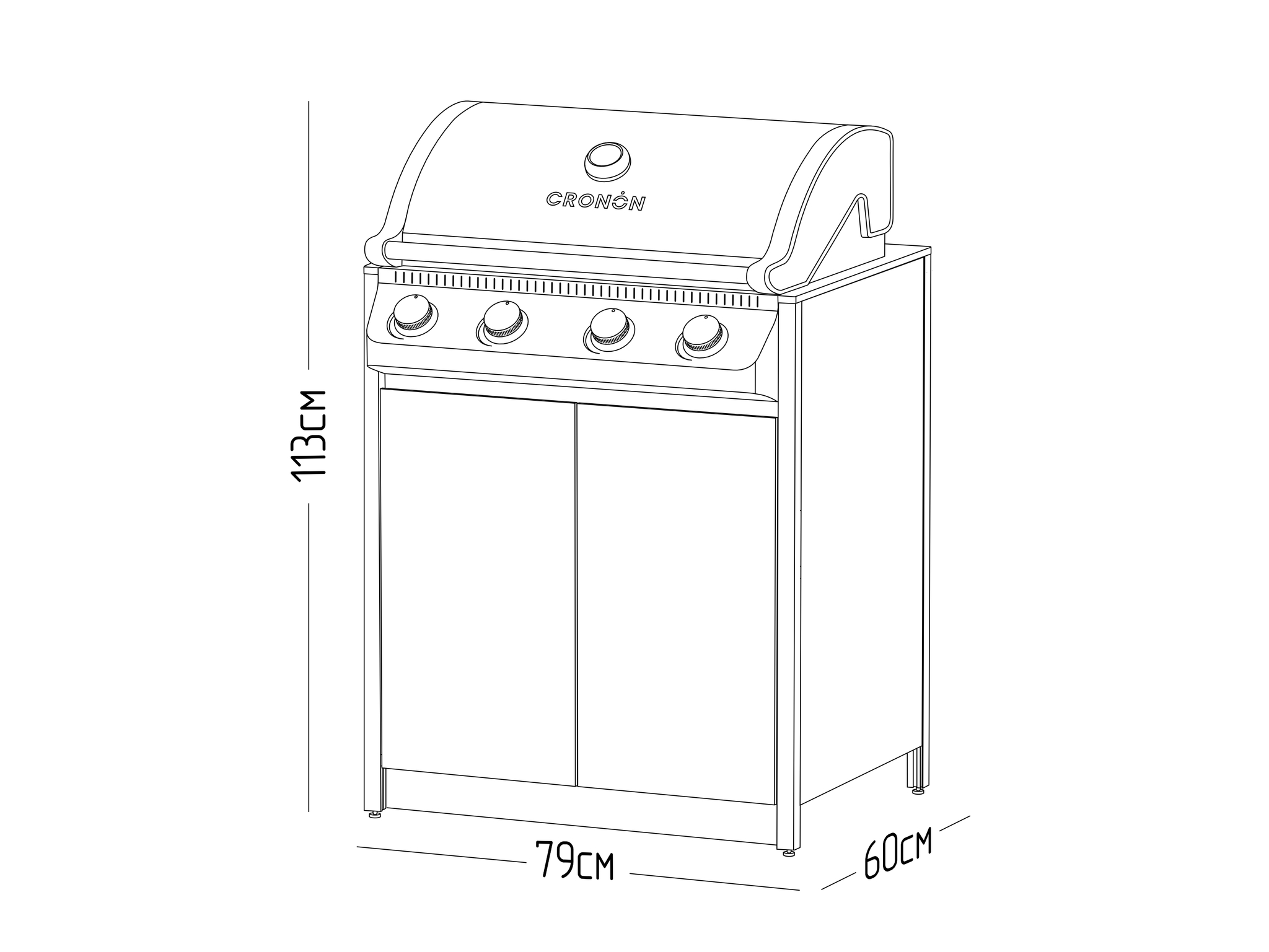 Встроенный газовый гриль на 4 конфорки Lounge D-06G от бренда Cronon — идеальное решение для любителей барбекю и качественной гриль-кухни.