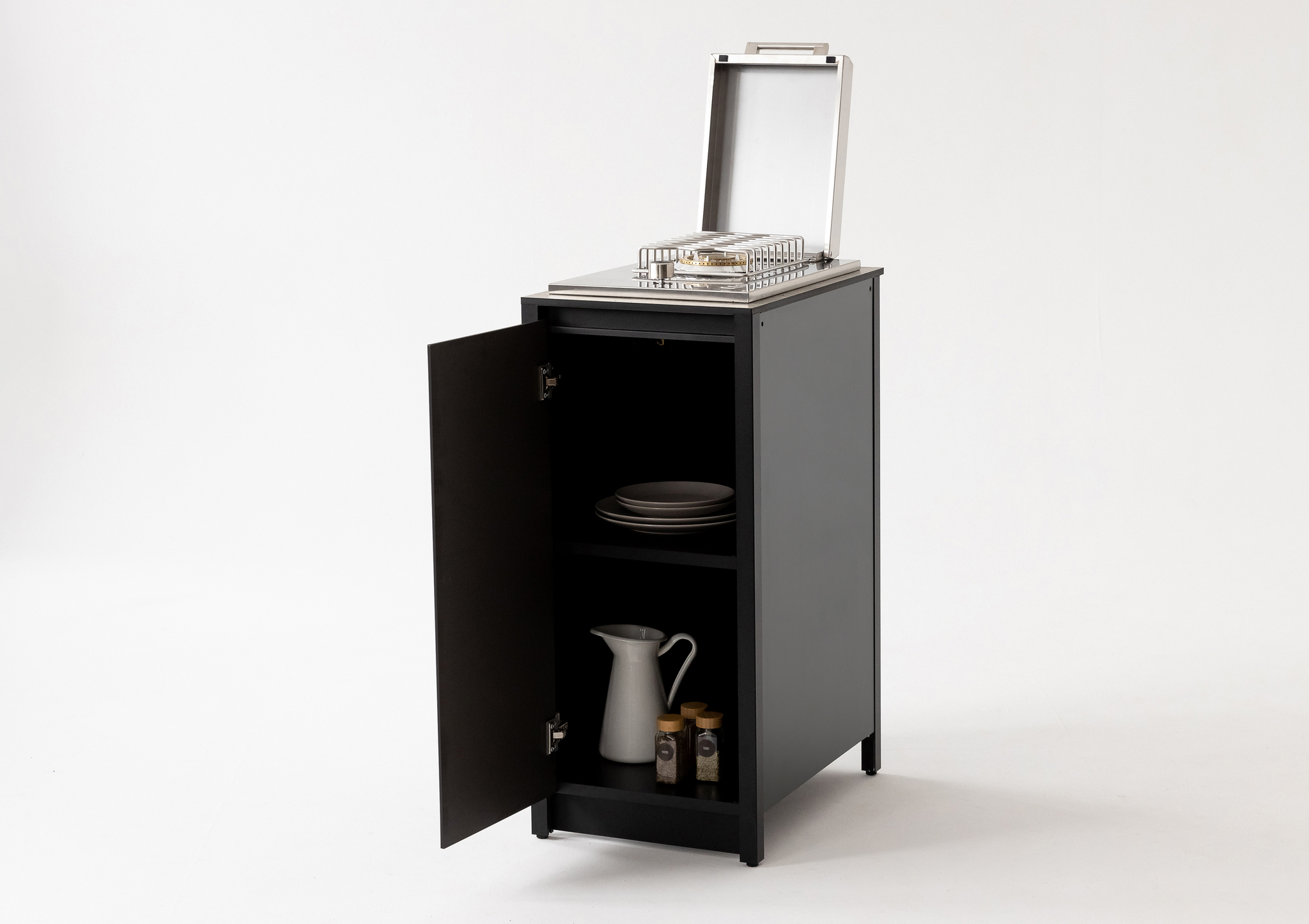Газовая плита встроенная в тумбу с дверцей размером 40х60х90 см для кухни на улице и барбекю комплексов на даче