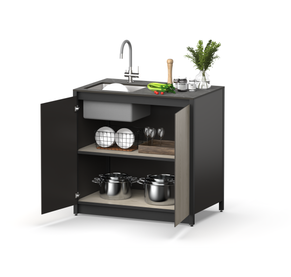 Шкаф напольный с мойкой Lounge D-04S от бренда Cronon — стильное и функциональное решение для вашего уличного и домашнего пространства.
