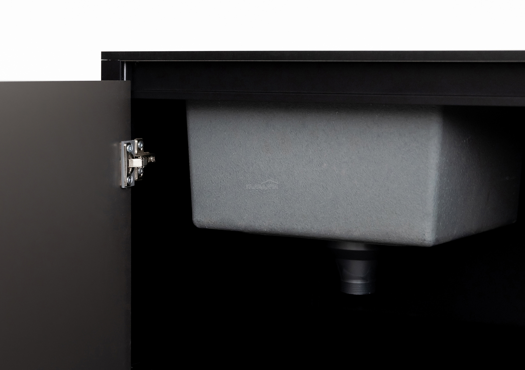 Сочетание алюминиевого каркаса, влагостойких материалов и нержавеющей стали обеспечивает долгий срок службы конструкции. Регулируемые ножки позволяют легко подстроить шкаф под любую поверхность. В комплекте уже есть сифон, что делает установку быстрой и удобной.