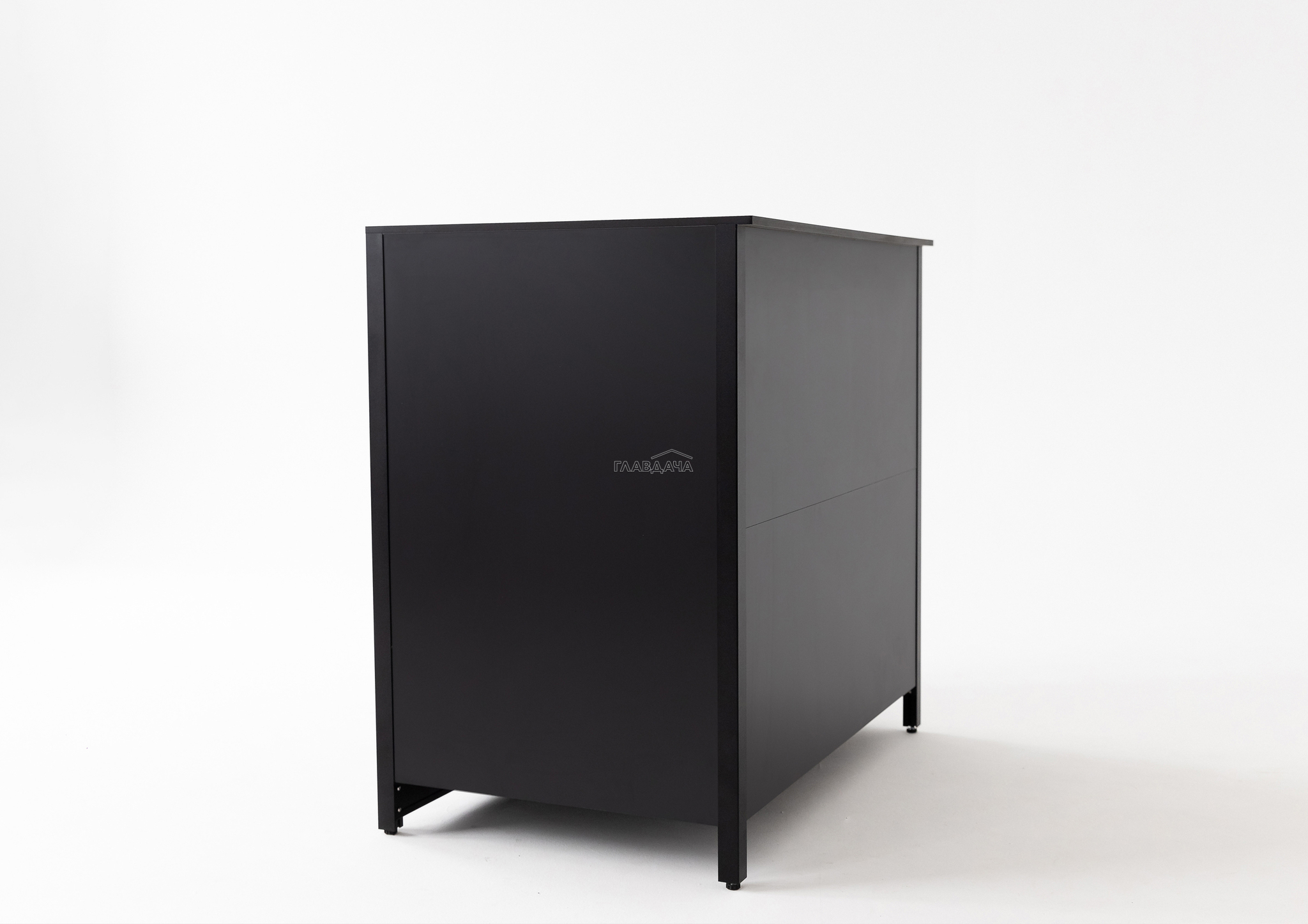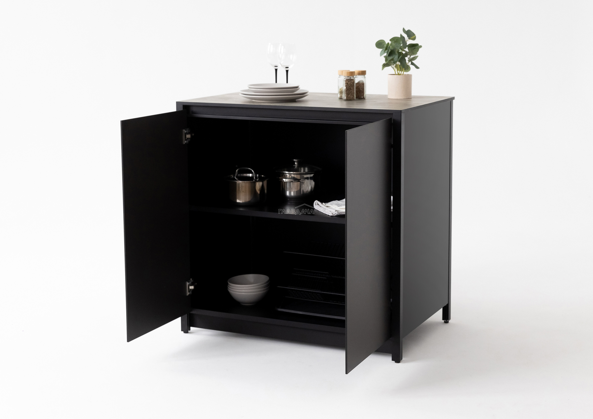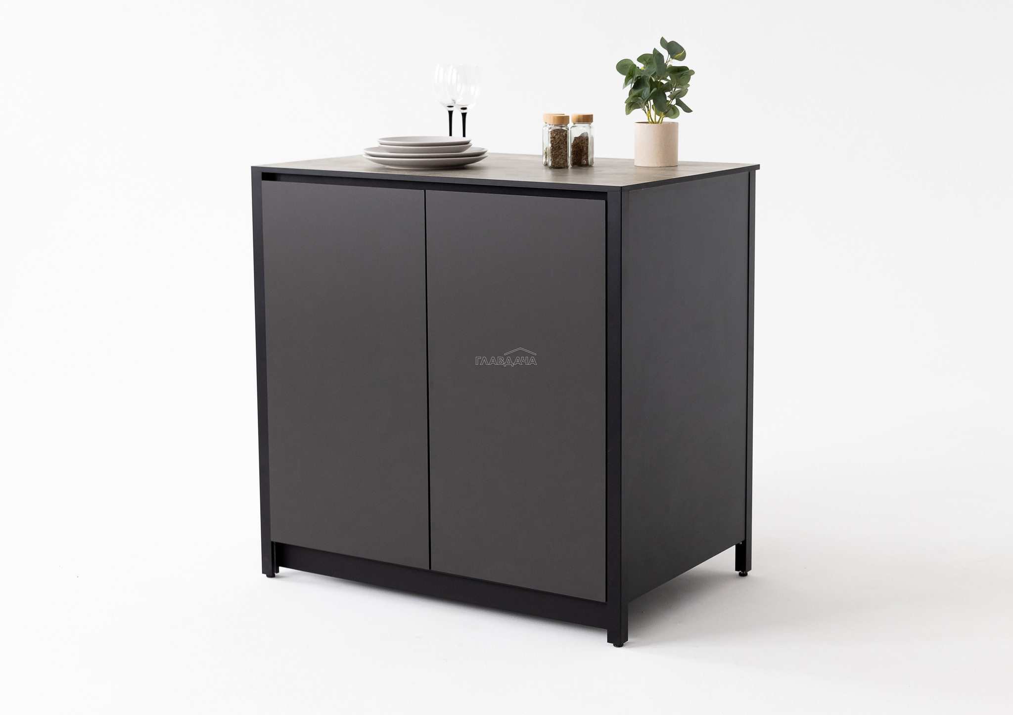 Он изготовлен из прочных материалов и отличается минималистичным дизайном. Алюминиевый каркас, влагостойкие столешница и фасад делают этот шкаф надежным и функциональным. Ножки регулируются для максимально удобного использования.