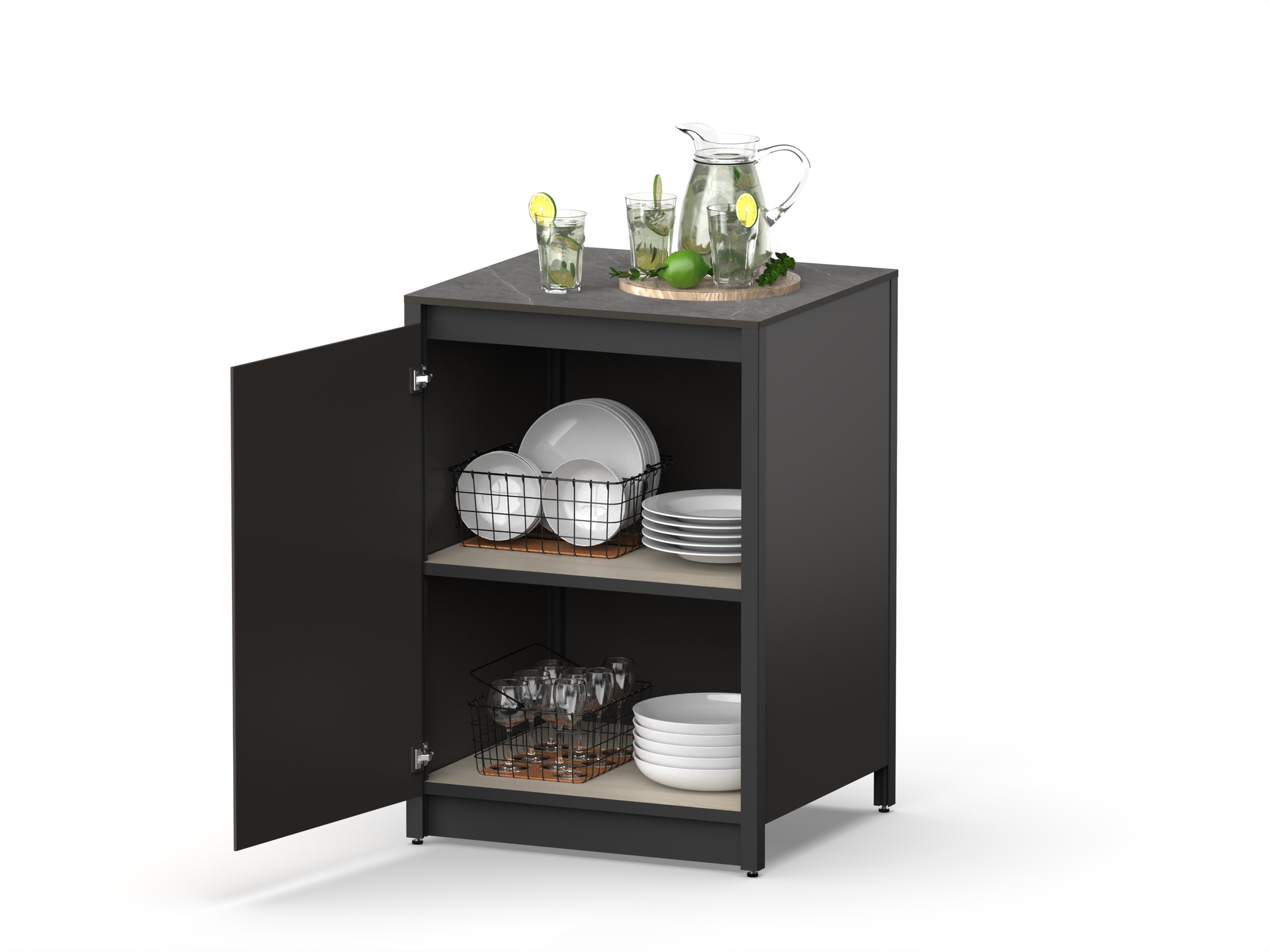 Эргономичность, высокое качество материалов, удобные размеры и регулируемые ножки делают данную кухонную тумбу незаменимым элементом всей уличной зоны. Надежный алюминиевый каркас, влагостойкие столешница и фасад обеспечат сохранность эксплуатационных свойств и внешнего вида конструкции на долгие годы.