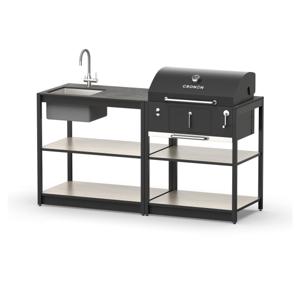 Модульный мангальный комплекс из двух модулей открытого типа со столешницей, мойкой и угольным грилем