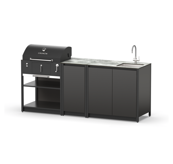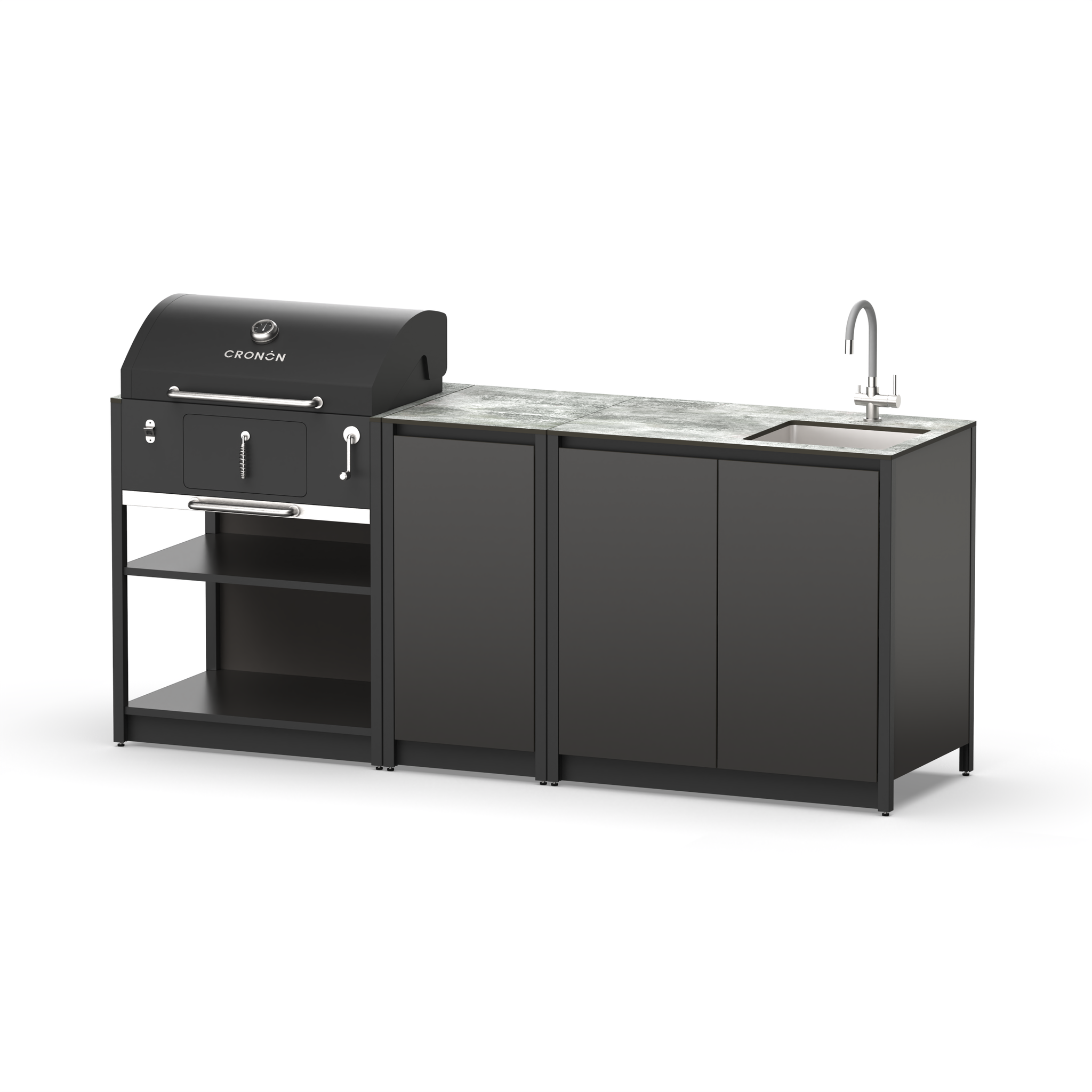 Мангальный комплекс из металла из трех модулей со столешницей, мойкой, смесителем и угольным грилем