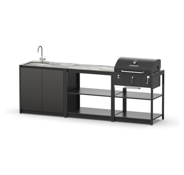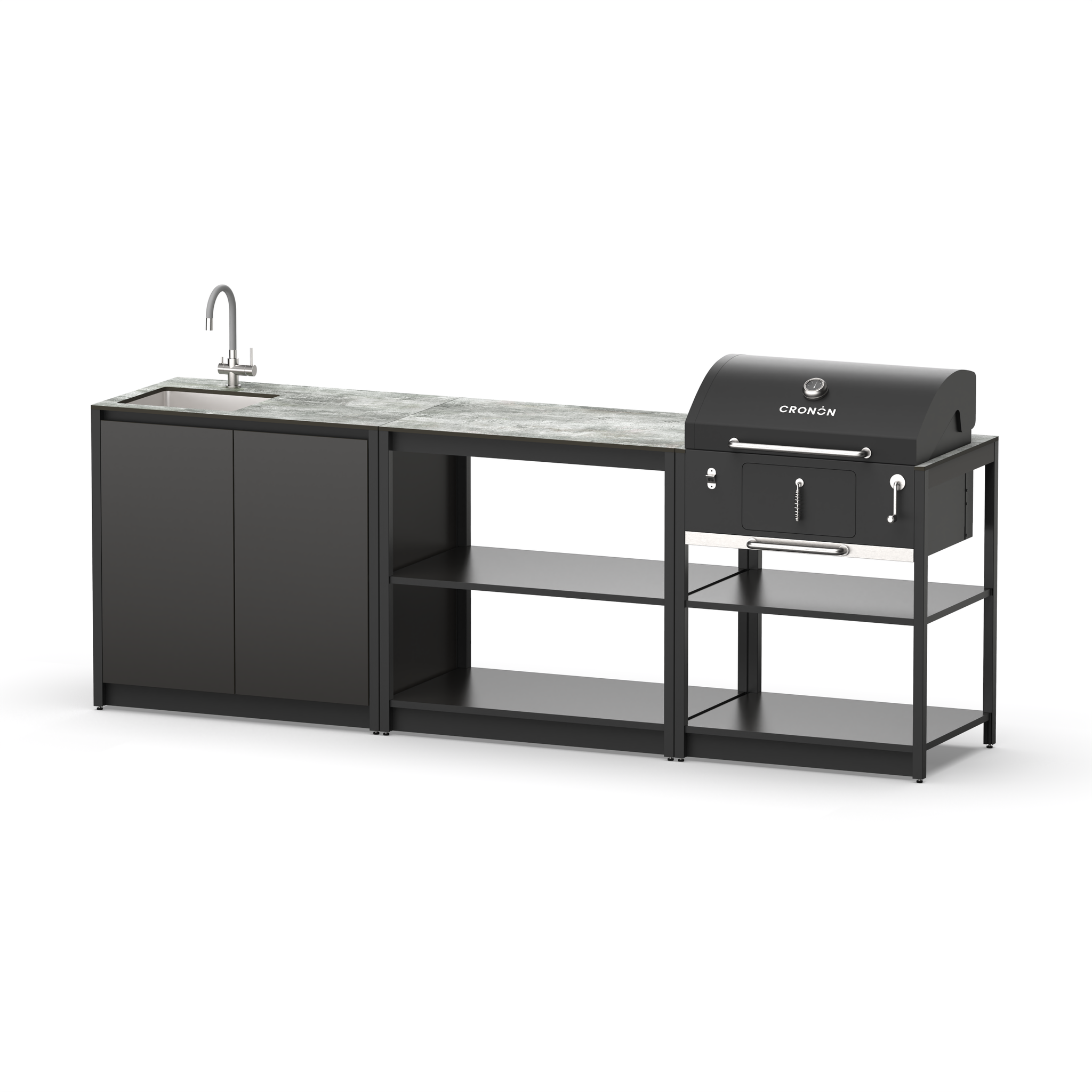 Сборный мангальный комплекс из трех модулей с мойкой, смесителем, столешницей и угольным грилем