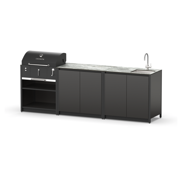Готовый мангальный комплекс из трех модулей с мойкой, смесителем, и угольным грилем