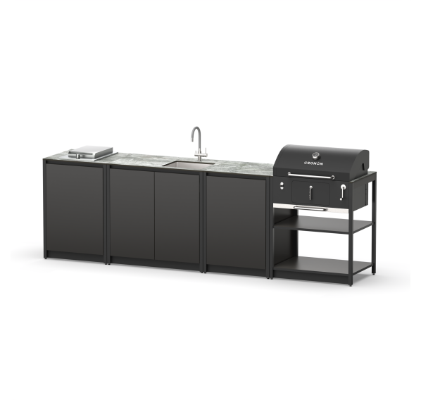 Модульный мангальный комплекс из четырех модулей с мойкой, газовой плитой, и грилем на углях