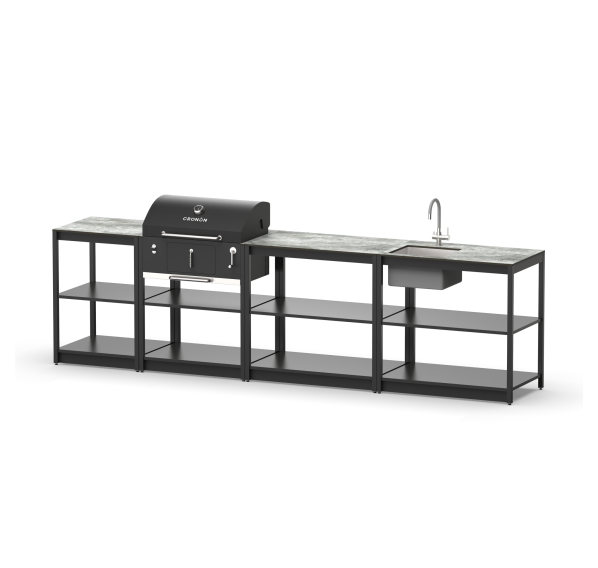 Готовый мангальный комплекс из четырех модулей открытого типа с мойкой, смесителем, и угольным грилем