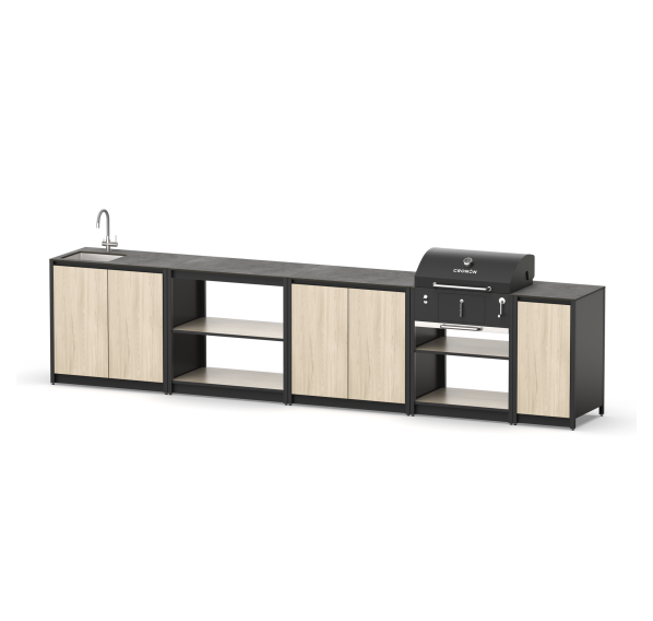 Мангальная зона из металла из пяти модулей с мойкой, столешницей и грилем на углях