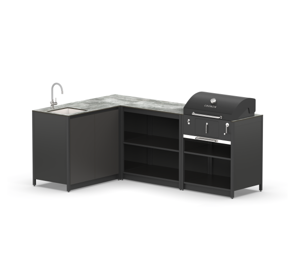 Угловой мангальный комплекс из четырех модулей с мойкой, смесителем, и угольным грилем