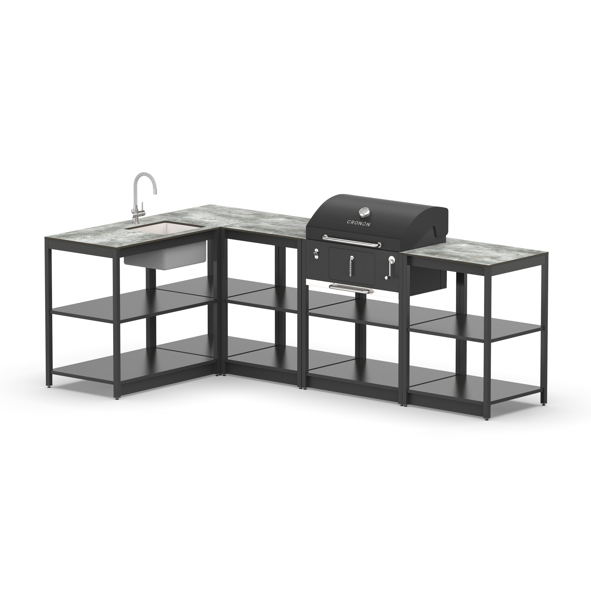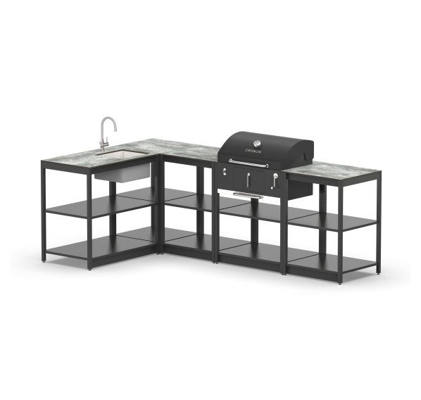 Угловой мангальный комплекс из пяти модулей открытого типа с мойкой, смесителем, и угольным грилем