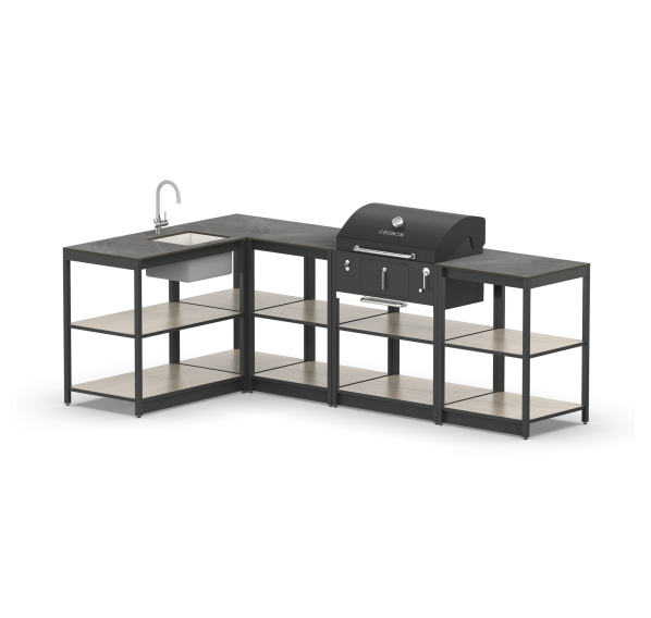 Угловой мангальный комплекс из пяти модулей открытого типа с мойкой, смесителем, и угольным грилем