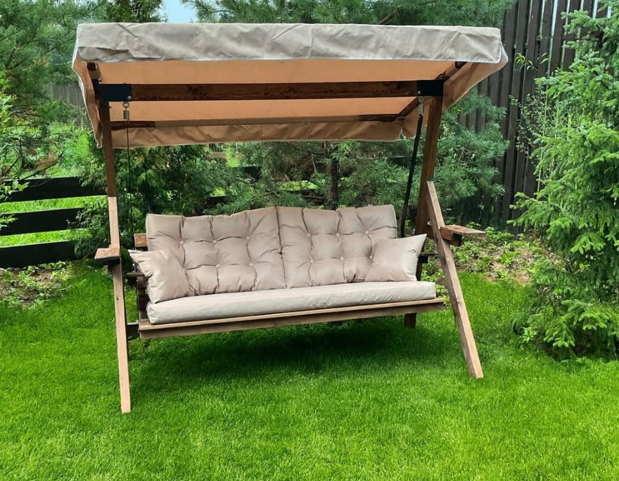 Качели можно легко разложить, и они превратятся в большой лежак, на котором можно комфортно вздремнуть на свежем воздухе.