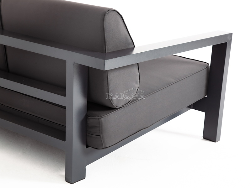 Стильный трехместный диван «Гранада» для обустройства зоны отдыха на балконе, в кафе или летней веранде. Каркас изготовлен из высокопрочного алюминия темно-серого (RAL7024) цвета.