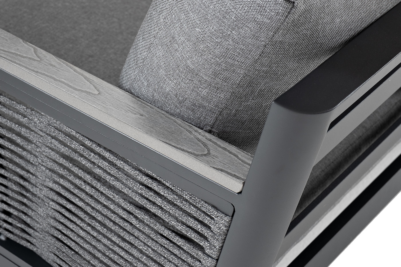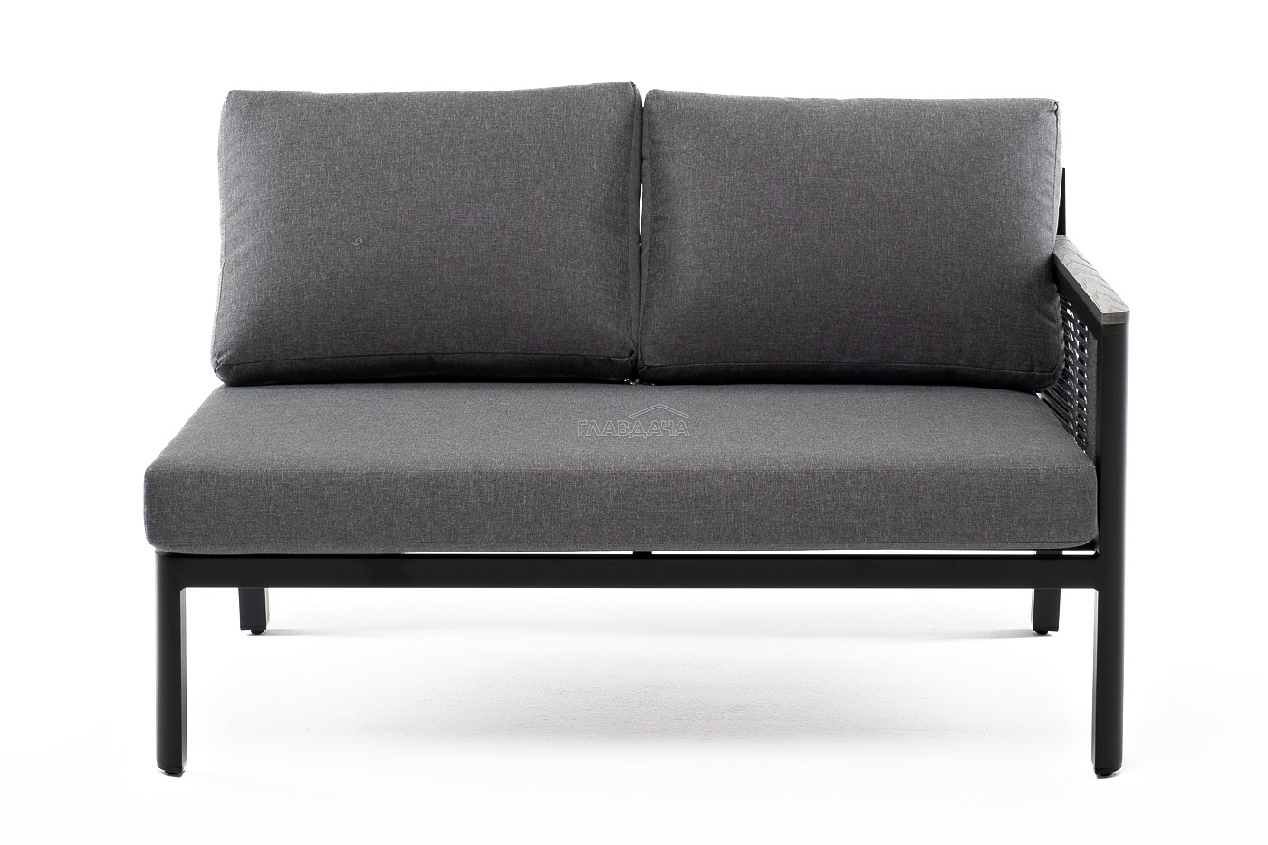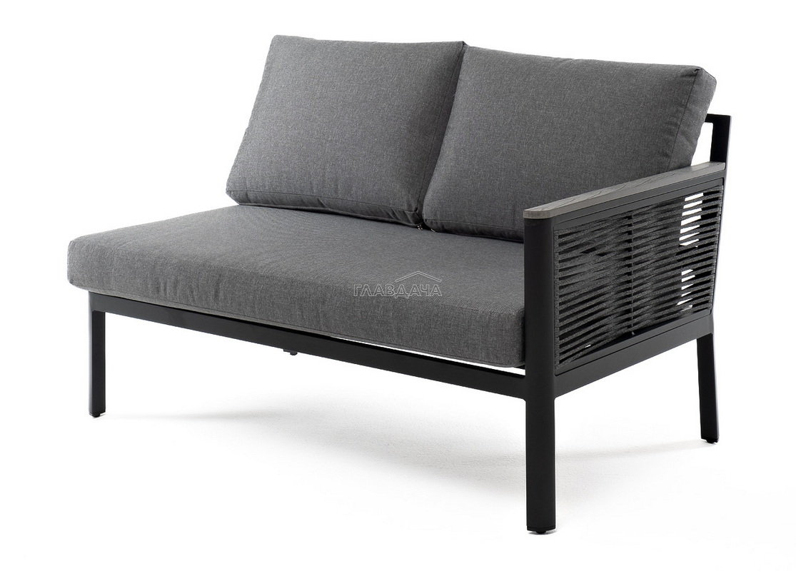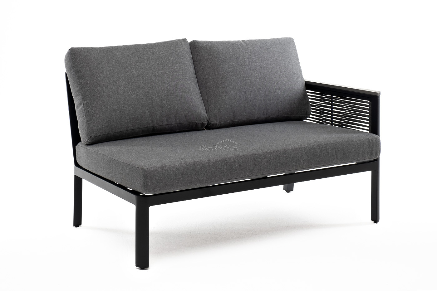 «Париж» модуль диванный левый изготовлен из алюминиевого каркаса темно-серого цвета. Боковины оплетены роупом - эластичными лентами из полиэфирных волокон, цвет серый.