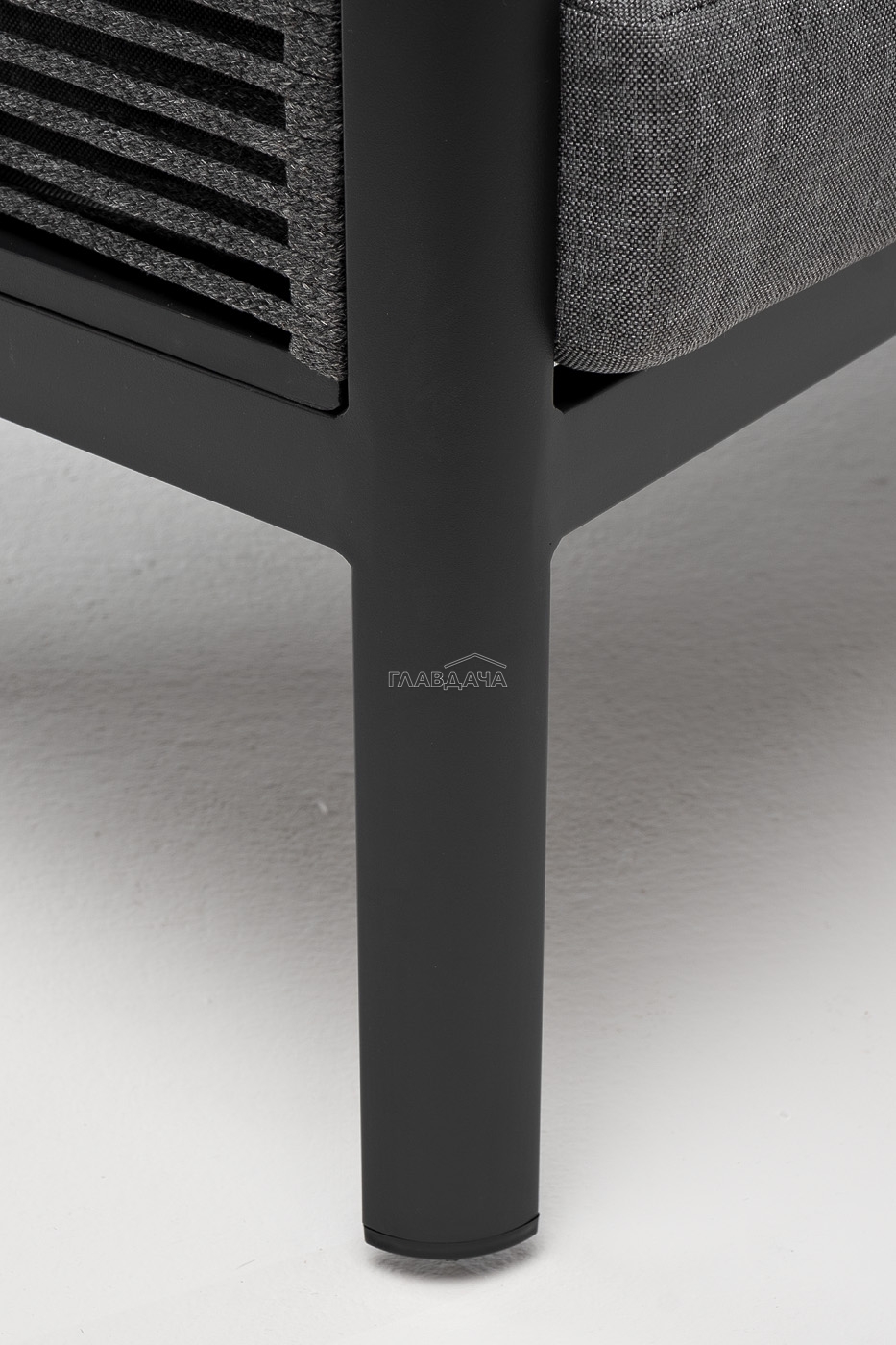 «Париж» модуль диванный правый изготовлен из алюминиевого каркаса темно-серого цвета. Боковины оплетены роупом - эластичными лентами из полиэфирных волокон, цвет серый.