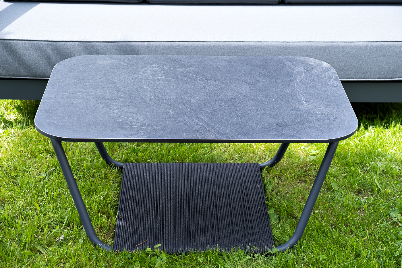 Журнальный столик со столешницей из высококачественного монолитного комакт- пластика HPL, толщиной 12 мм, цвет - «серый гранит»