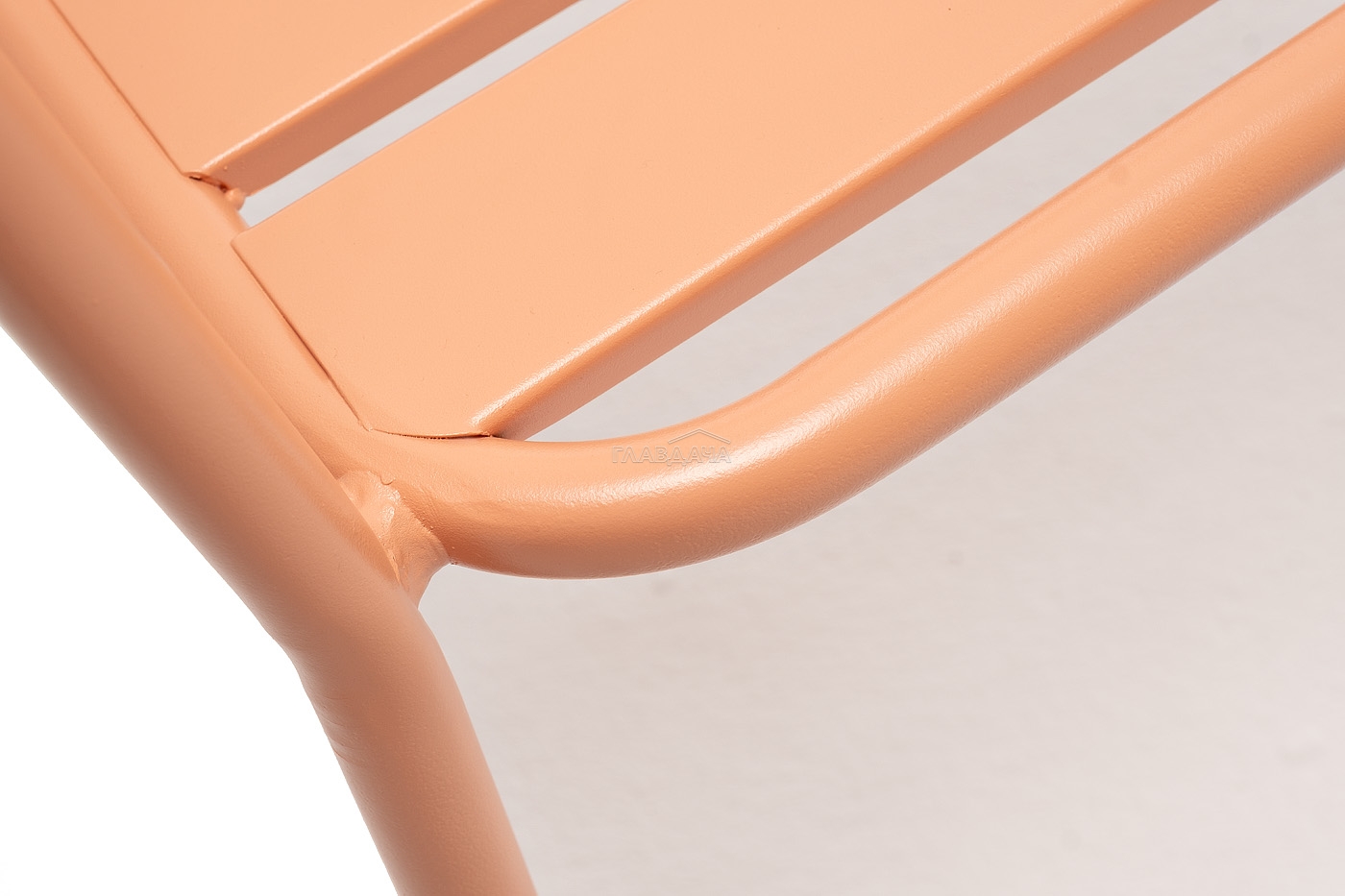 «Дионис» изготовлен из стального каркаса, окрашенного порошковой износостойкой краской светло-кораллового цвета.